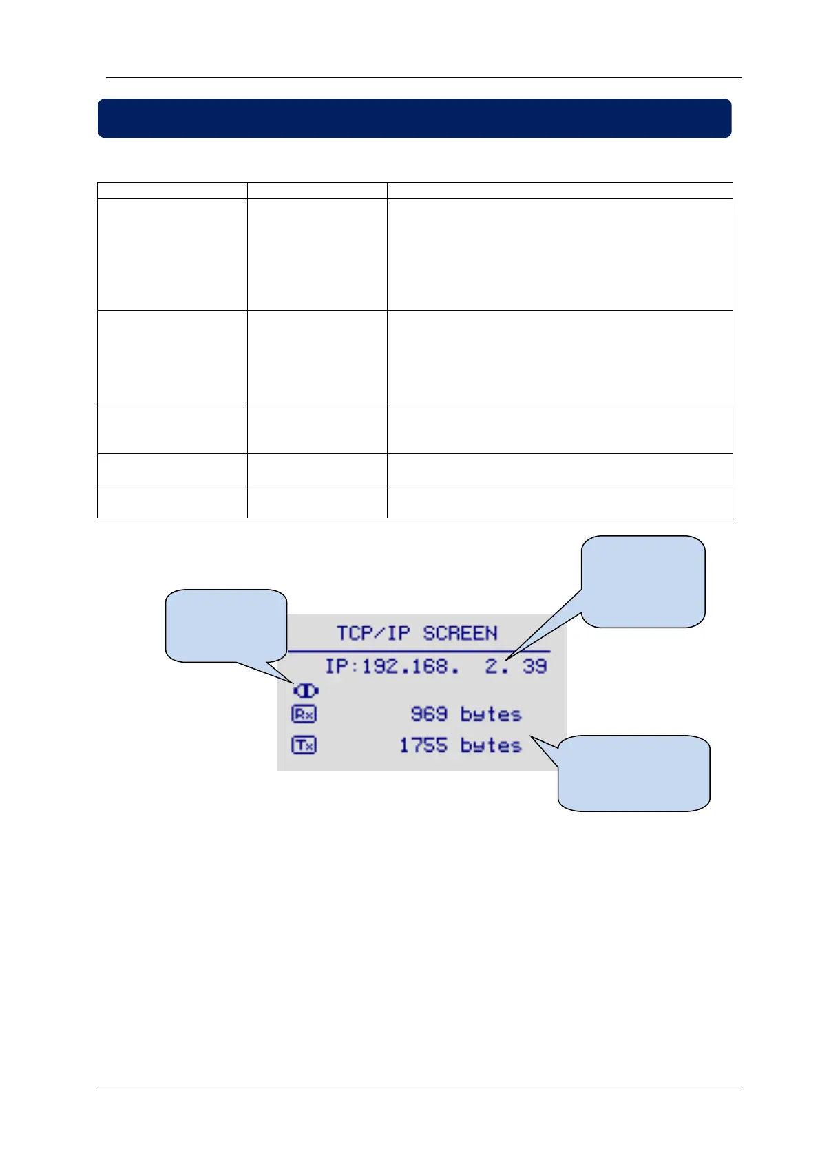 The ethernet connection status is monitored at ethernet screen page.