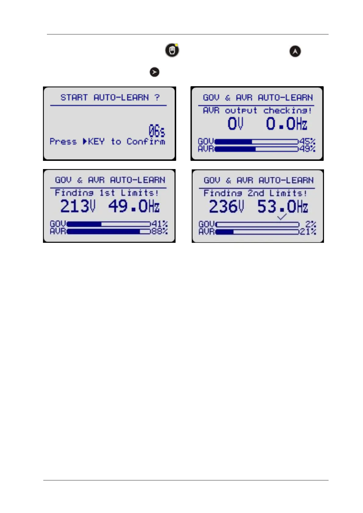 Auto learning is completed successfully. The controller will force the genset to its nominal speed and