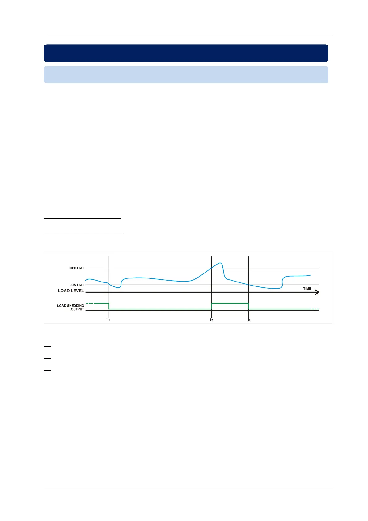 t3: the load goes below the Load Shedding Low Limit, thus the Load Shedding output becomes inactive.