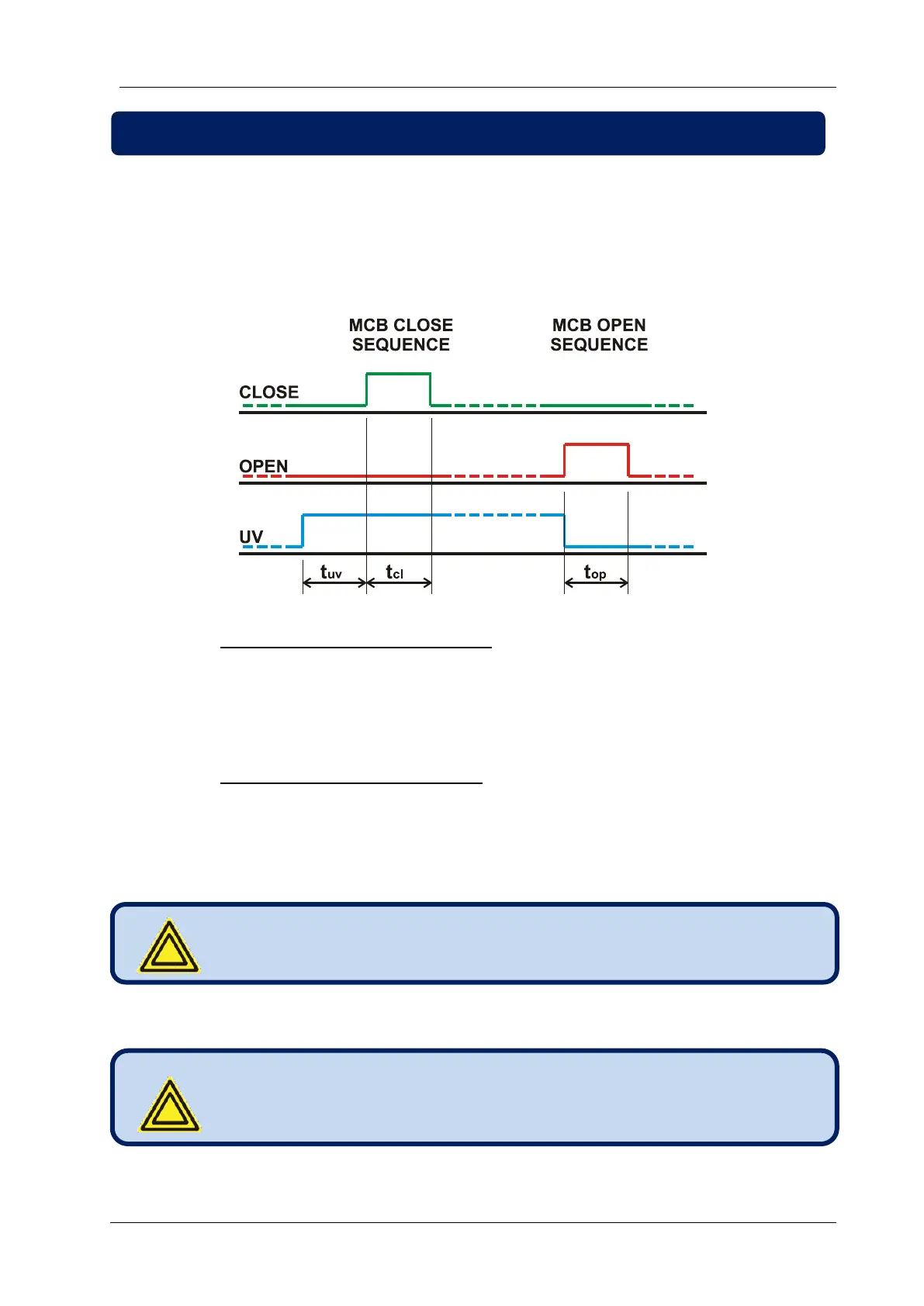 The MCB control is performed through 3 digital output functions, namely Open, Close and Undervoltage