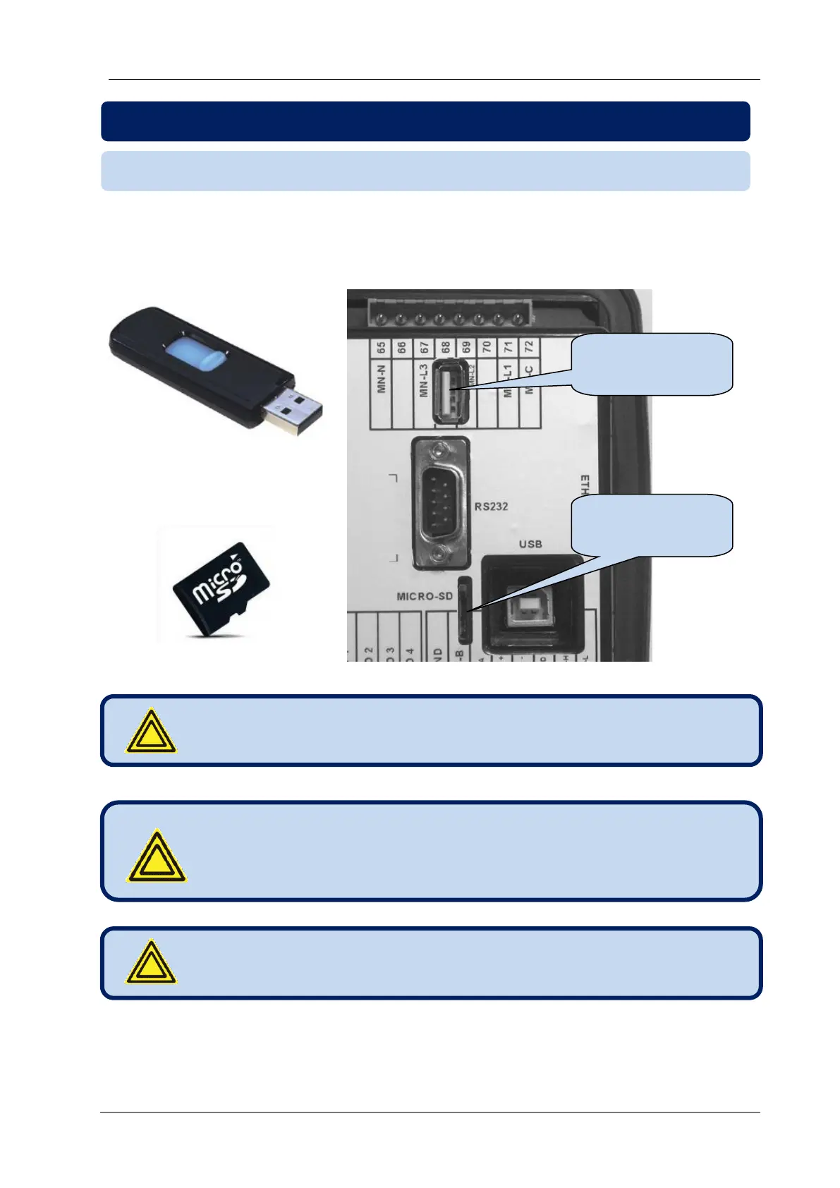 As soon as a USB flash memory or a MICRO-SD card is inserted, the unit will start data recording and