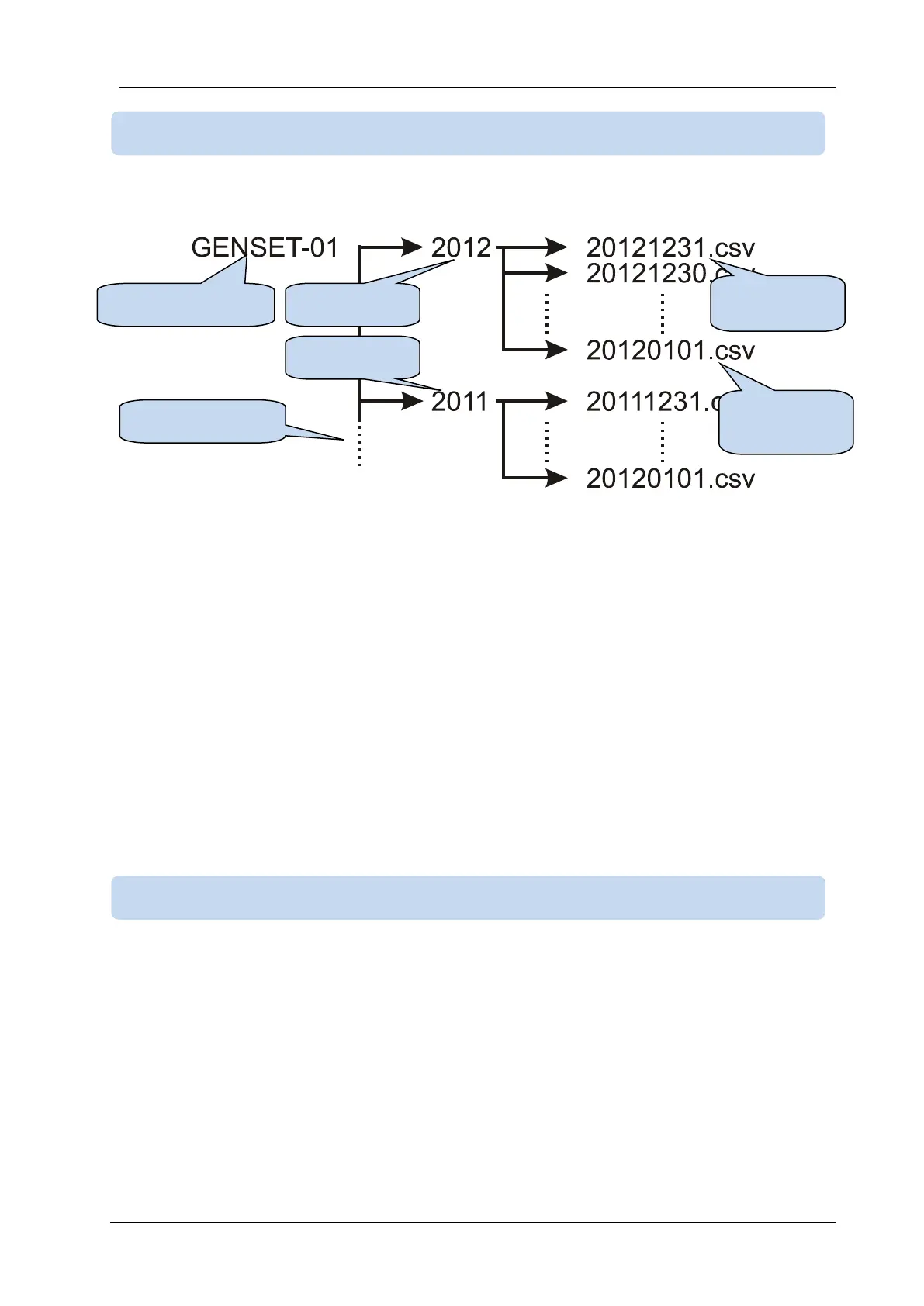 Inside the year directory, the controller will record data in a different file for each day of recording. The