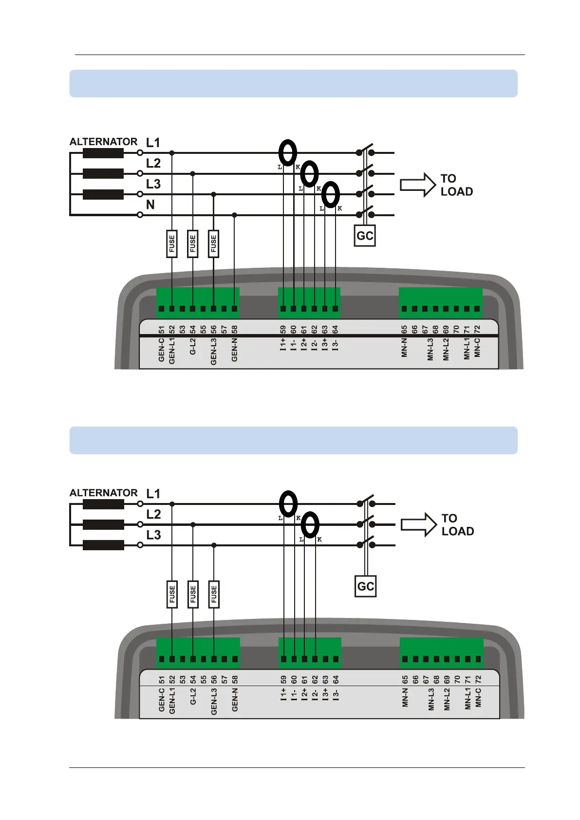 Datakom D-500 - Phase, 4 Wire, Delta; Phase, 3 Wire, Delta, 2 Ct (L1-L2)