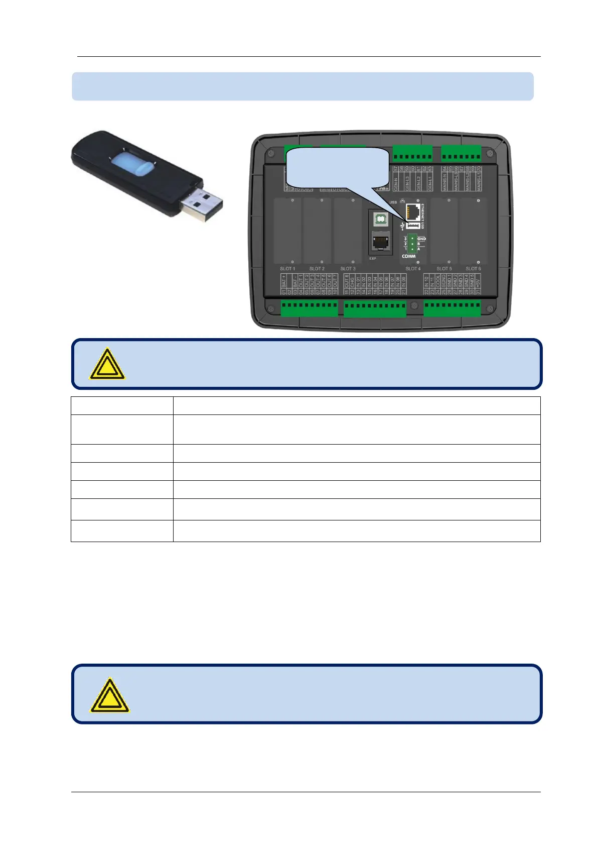 The USB-Host port is available in units with COMM option.