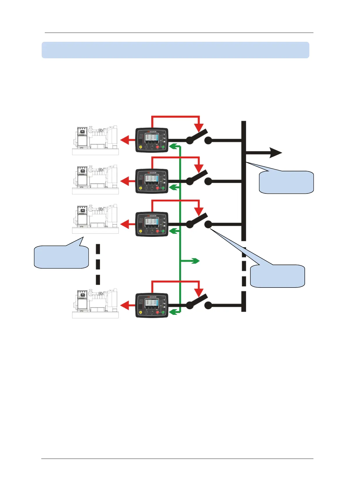 A maximum of 48 gensets can be paralleled on the same busbar using D-700 units. Always one of the
