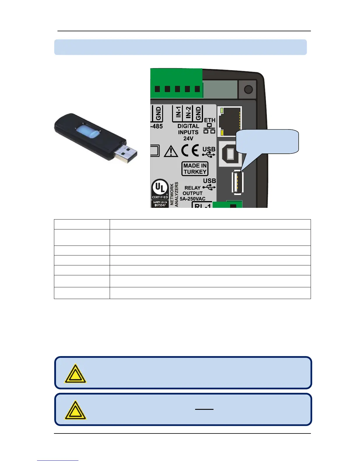 The USB-Host port is designed for detailed data recording. The period of recording is adjustable through