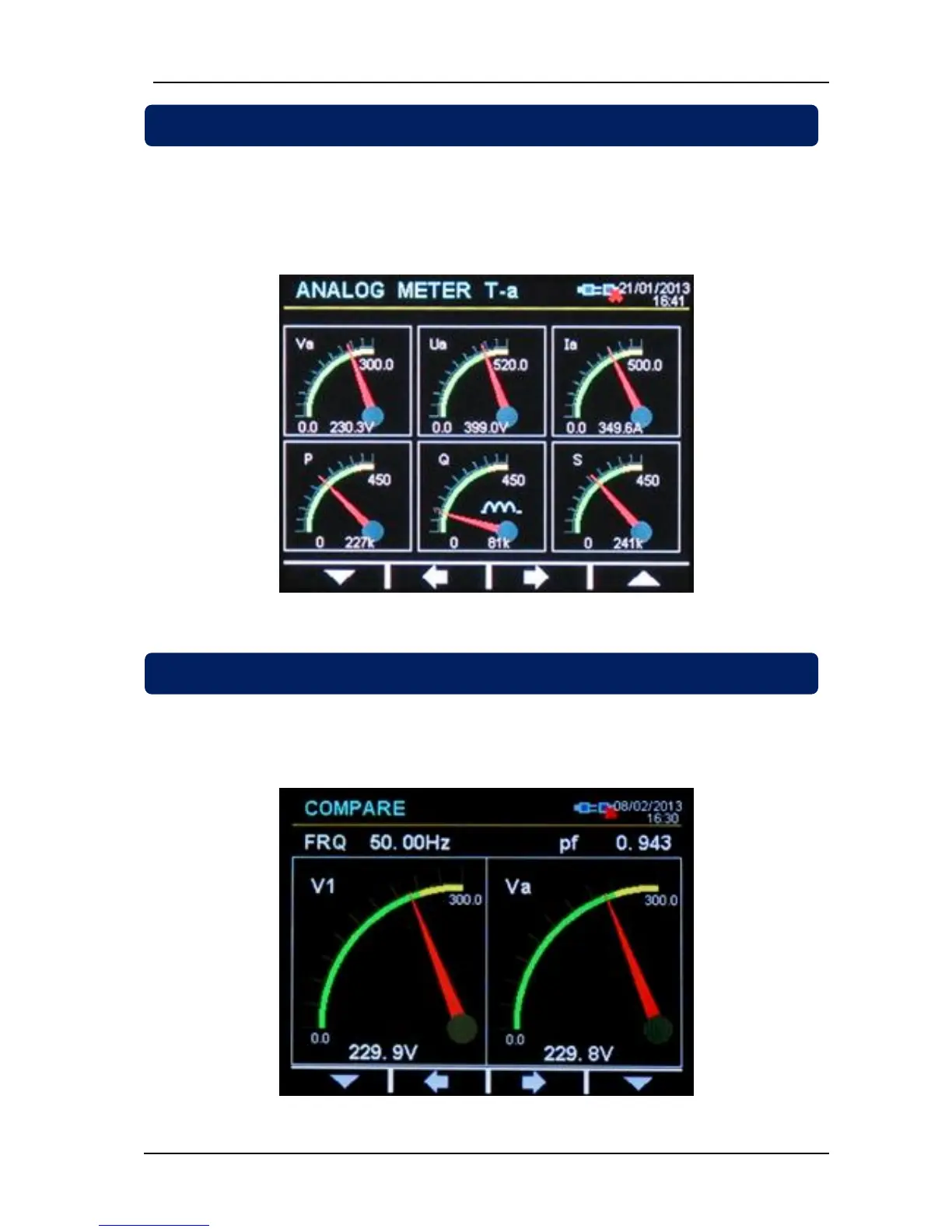 Comparaison displays screen consists on two analog gauges, where any measured parameter may be