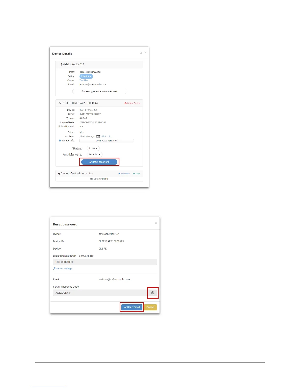 3. In the Device Details popup, click the blue Reset Password button.