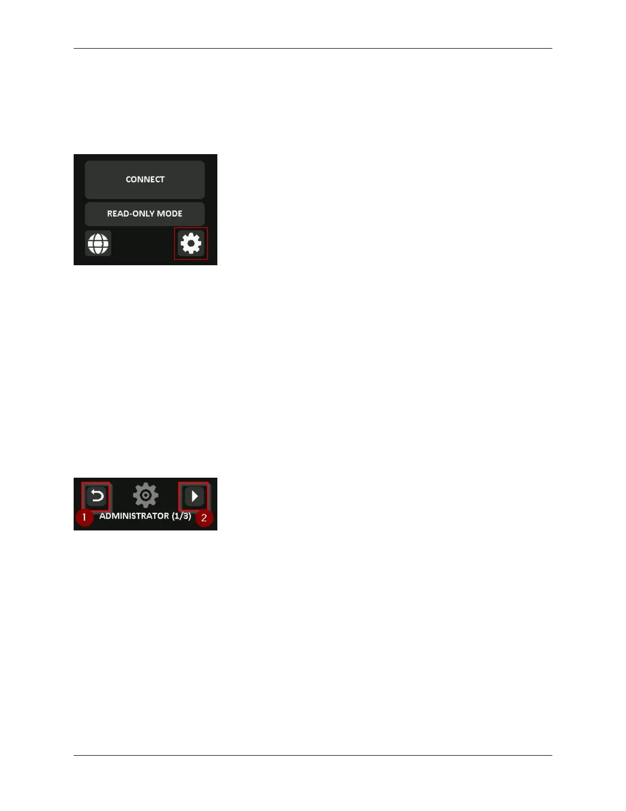Once inside the administrator menu, the forward(2) and back(1) button can be used to navigate