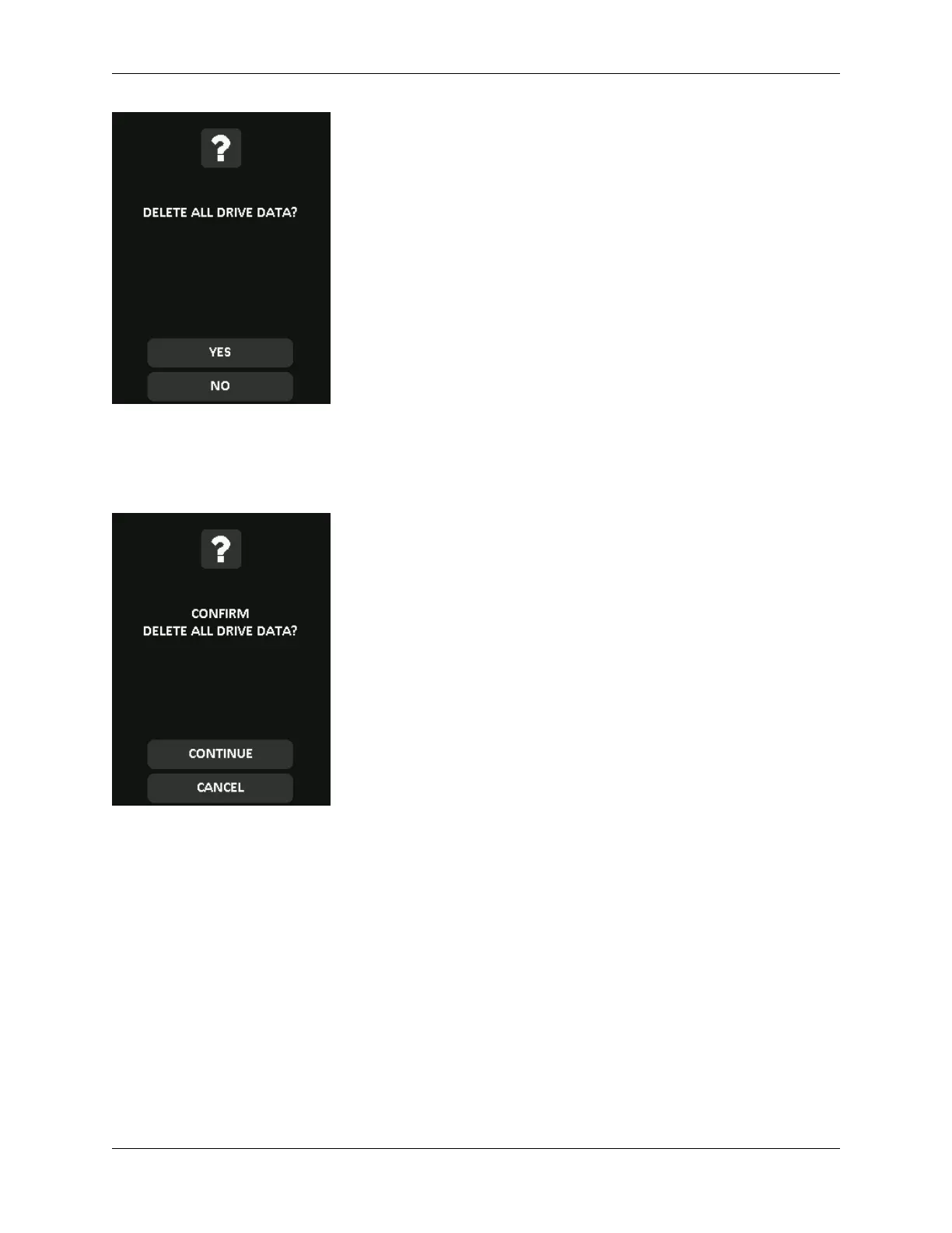 4. When your DL4 shows the “Confirm Delete all drive data?” prompt, tap Continue. Selecting