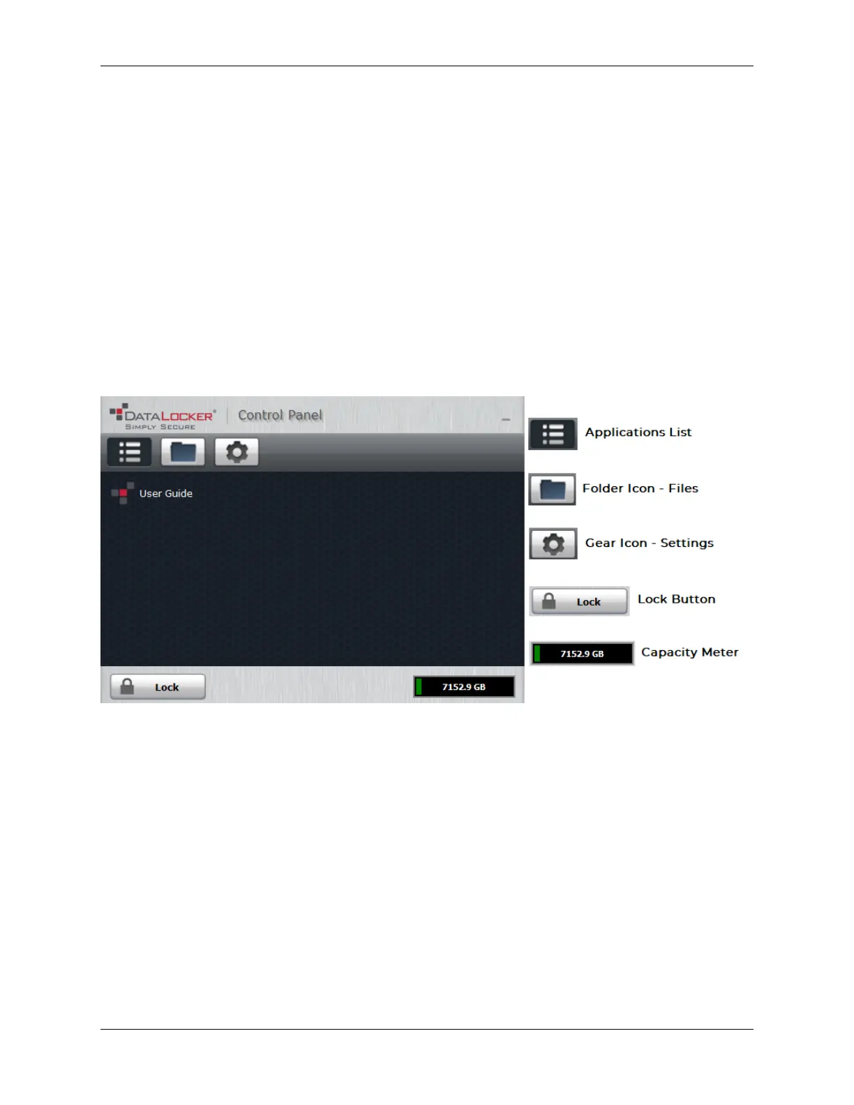 1. Click Lock in the bottom left-hand corner of the DataLocker Control Panel to safely lock your