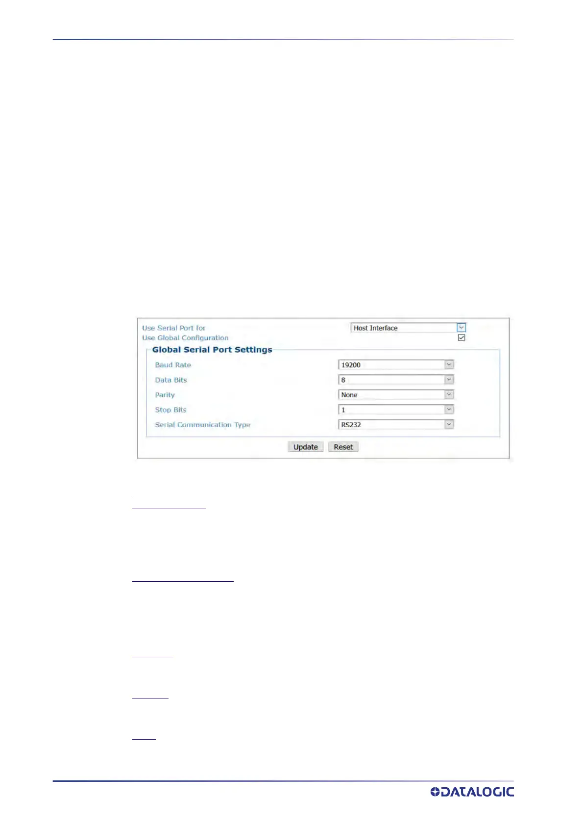 Select a value from 1200 to 115200 from the drop-down list. Baud Rate is the transmission