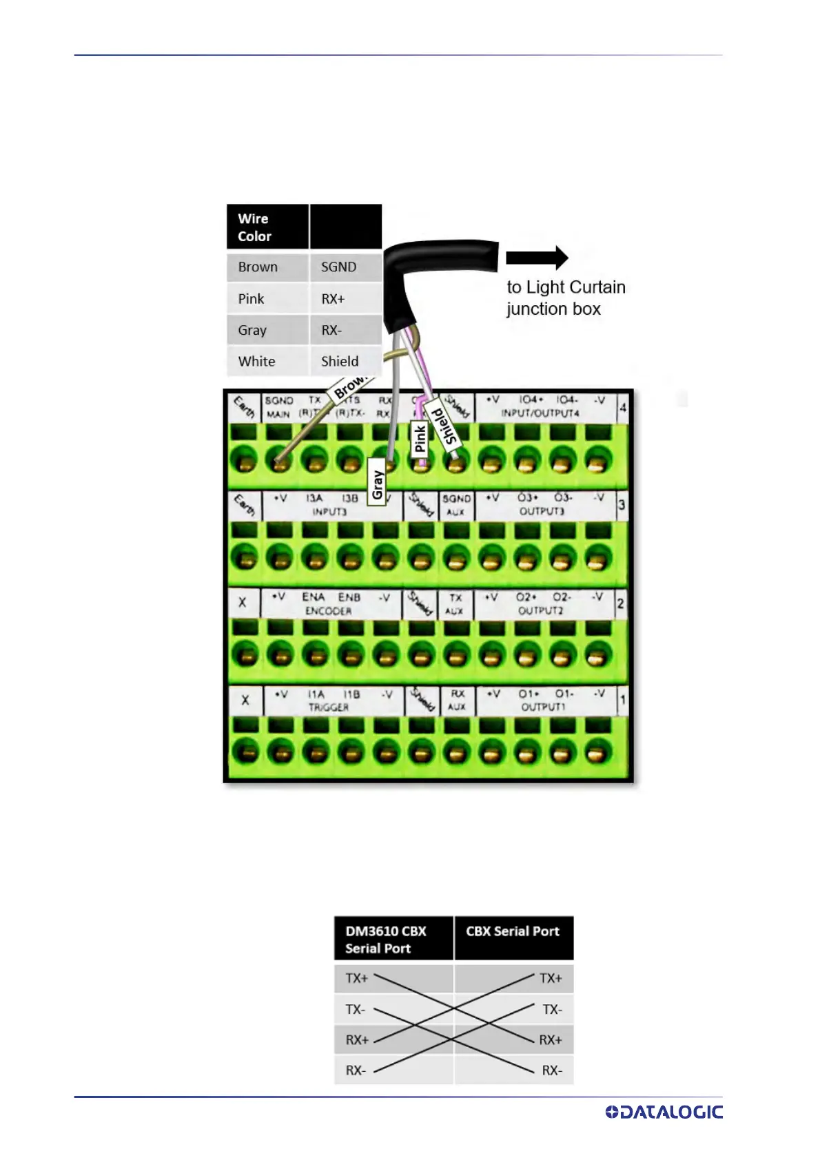 When using the Datalogic Light Curtain for focusing, it must be wired to the CBX510