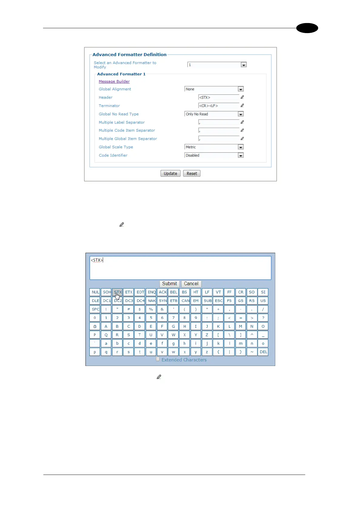 3. For the Header, click to activate the Text Entry Tool and select STX (Start of Text),