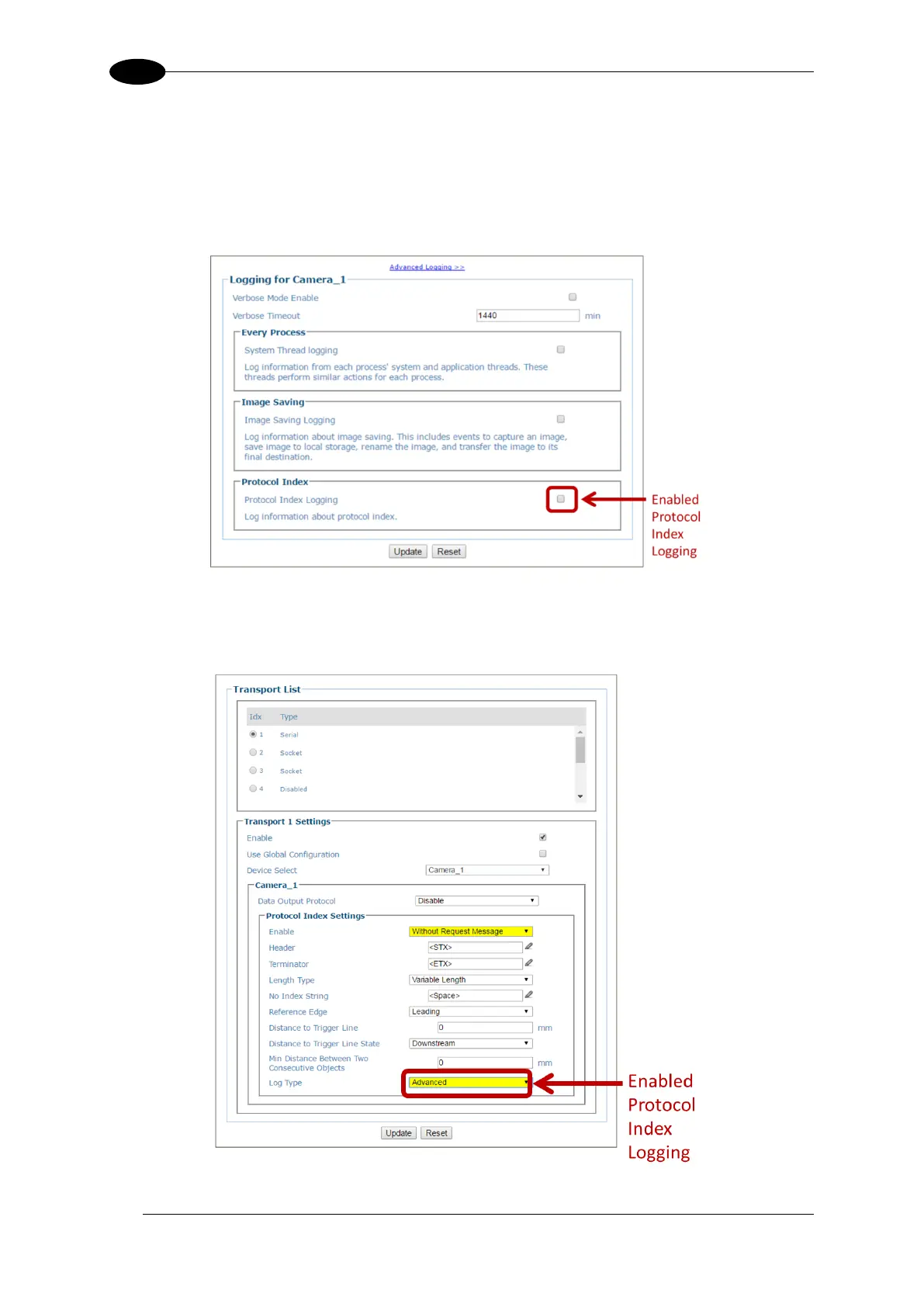 1. Access Device Settings | Camera_1 | Logging and the logging window will open.