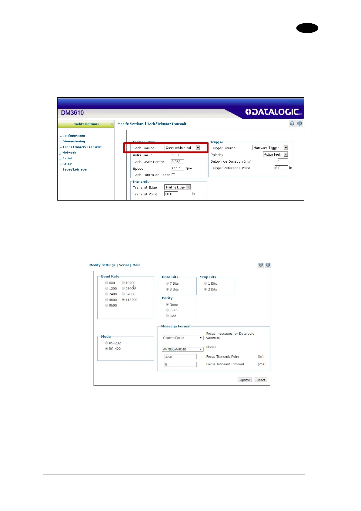 6. Select Camera Focus from the Focus messages for Datalogic cameras drop-down