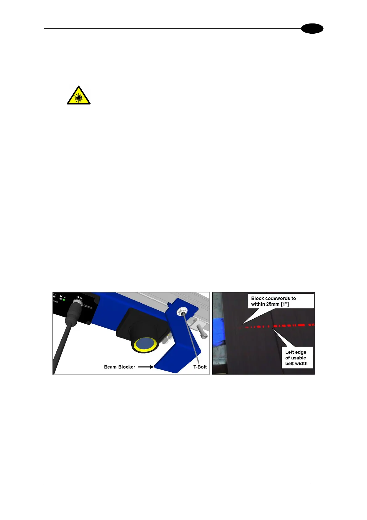3. While viewing the codewords on the belt, adjust the beam blockers to within one inch