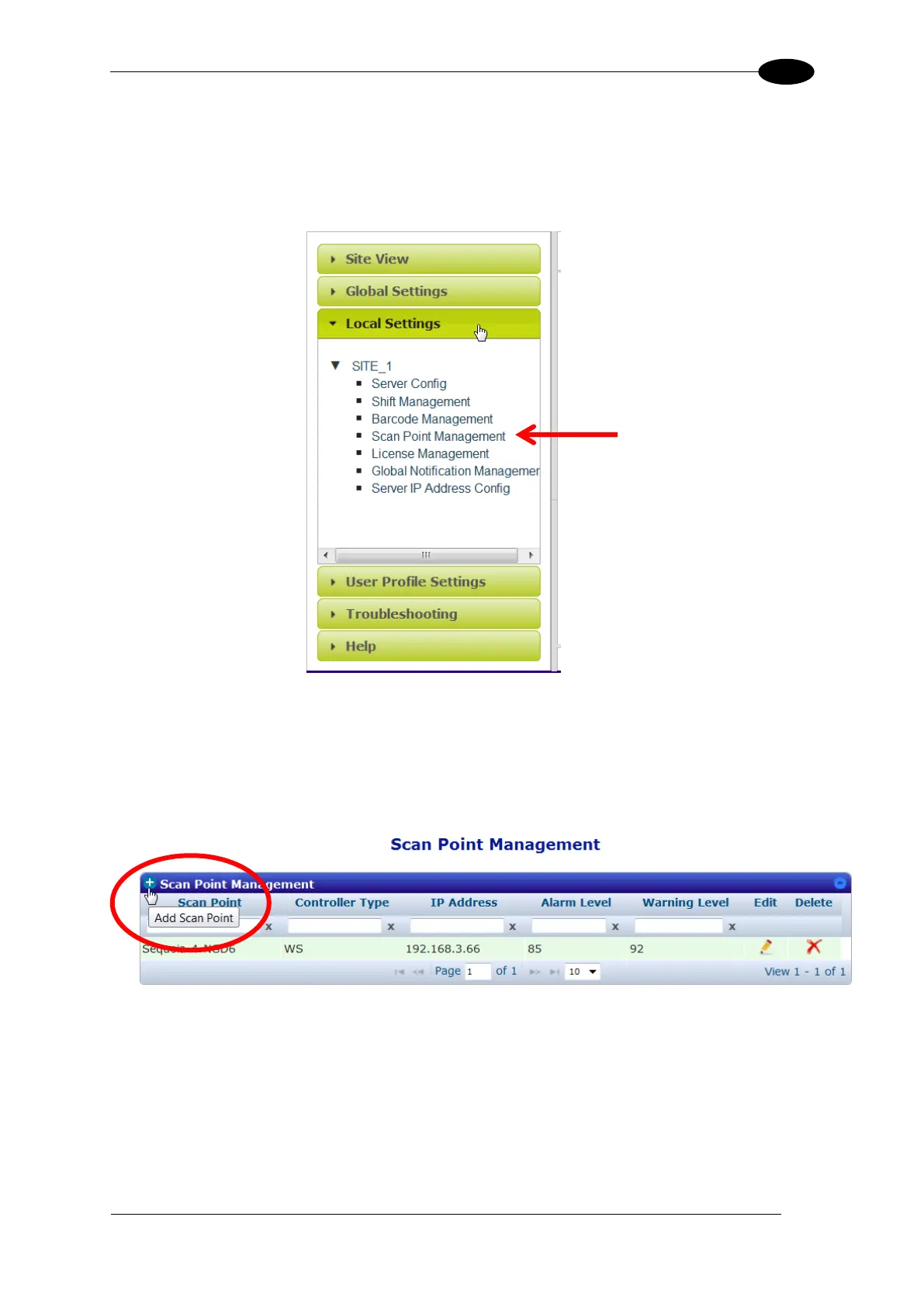 12. From the WebSentinel PLUS menu tree, select Local Settings / Scan Point