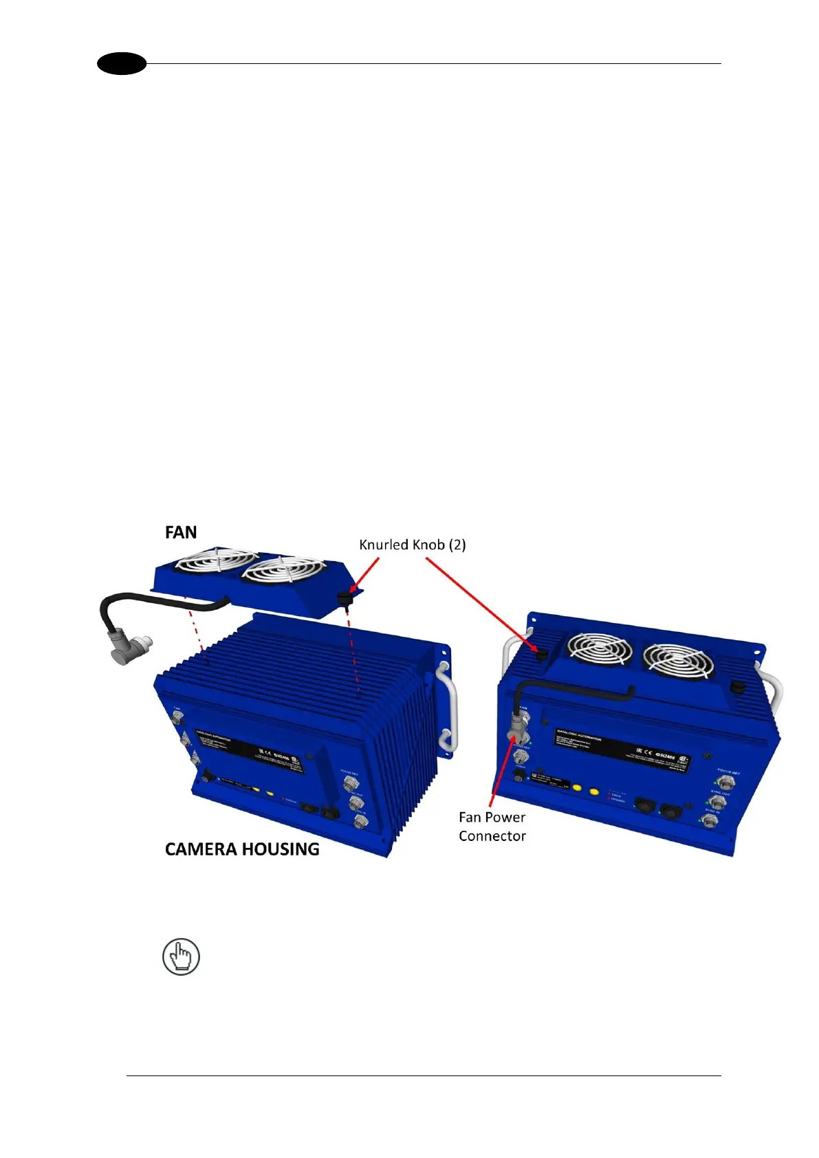The AV7000 Camera is shipped without the cooling fan attached to the top of the housing.