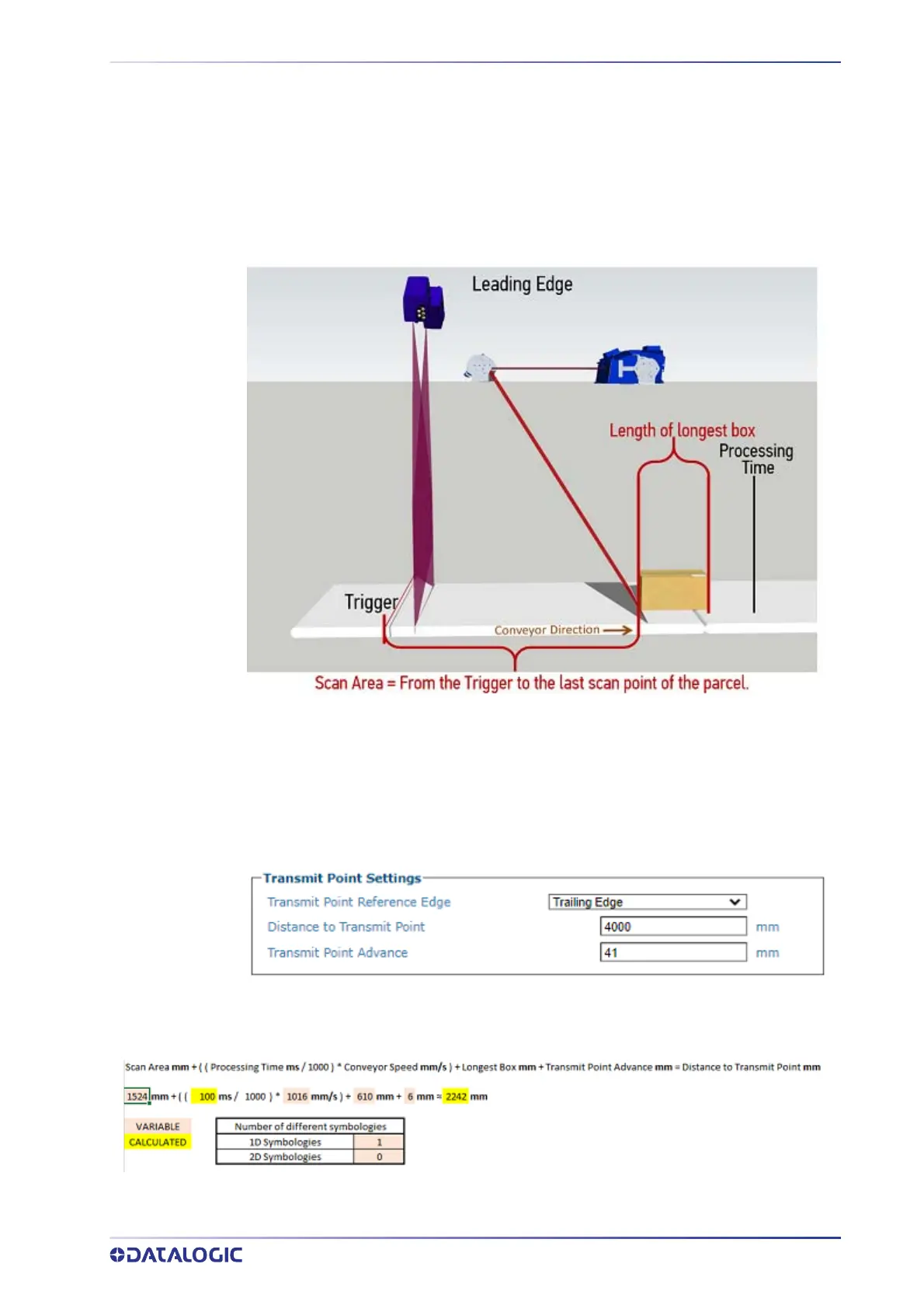 Scan Area + (Calculated Processing Time * Conveyor Speed) + Longest Box Length +