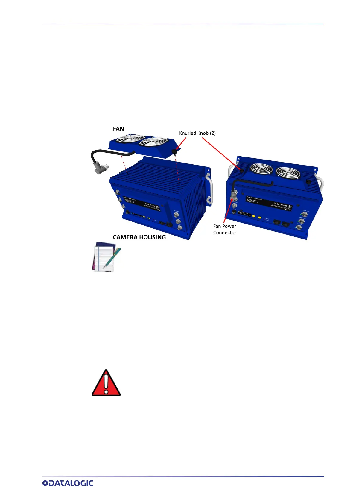 The AV7000 Camera is shipped without the cooling fan attached to the top of the hous-