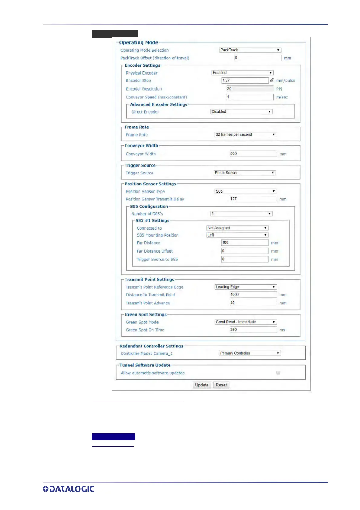PackTrack offset parameter allows for a slight adjustment on the Y plane.