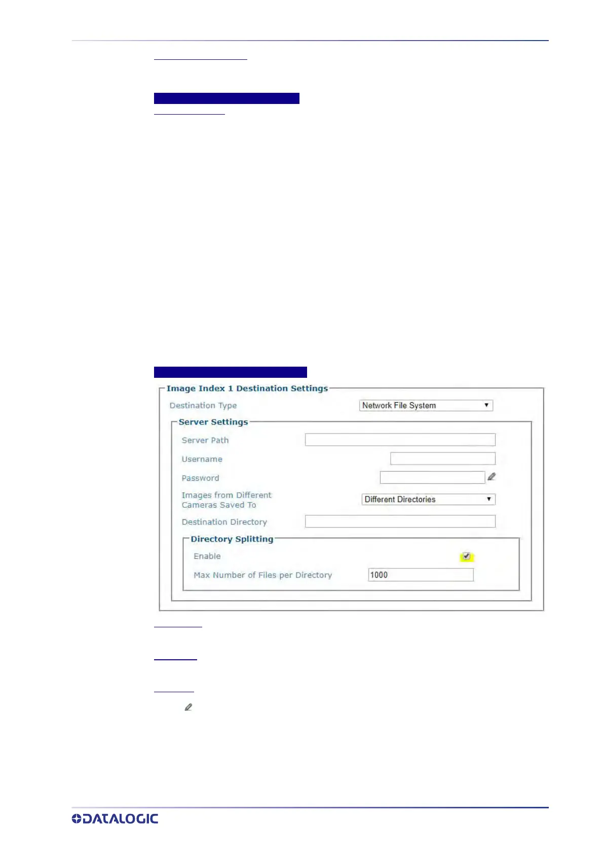 Image Index n Destination Settings inputs will appear for the image destinations selected.