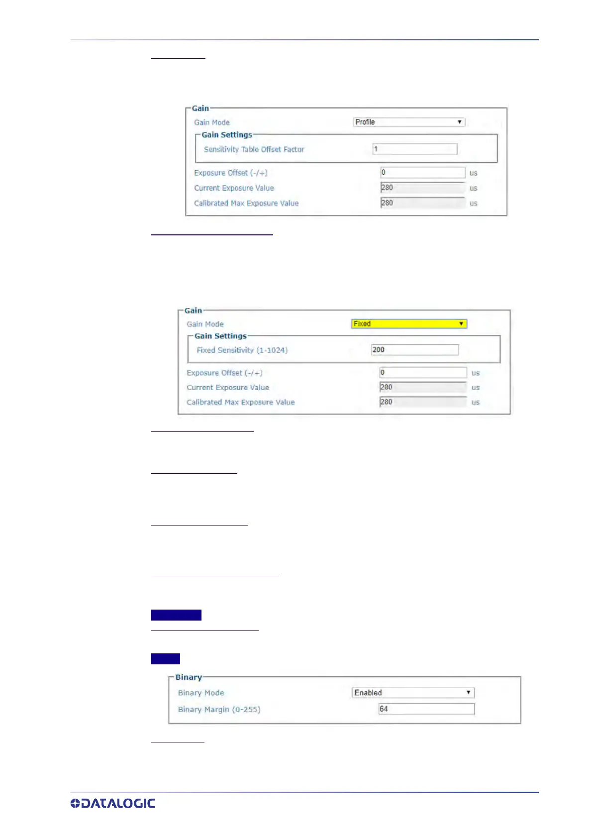 If Profile is selected, a Sensitivity Table offset Factor will adjust the gain according to the focus