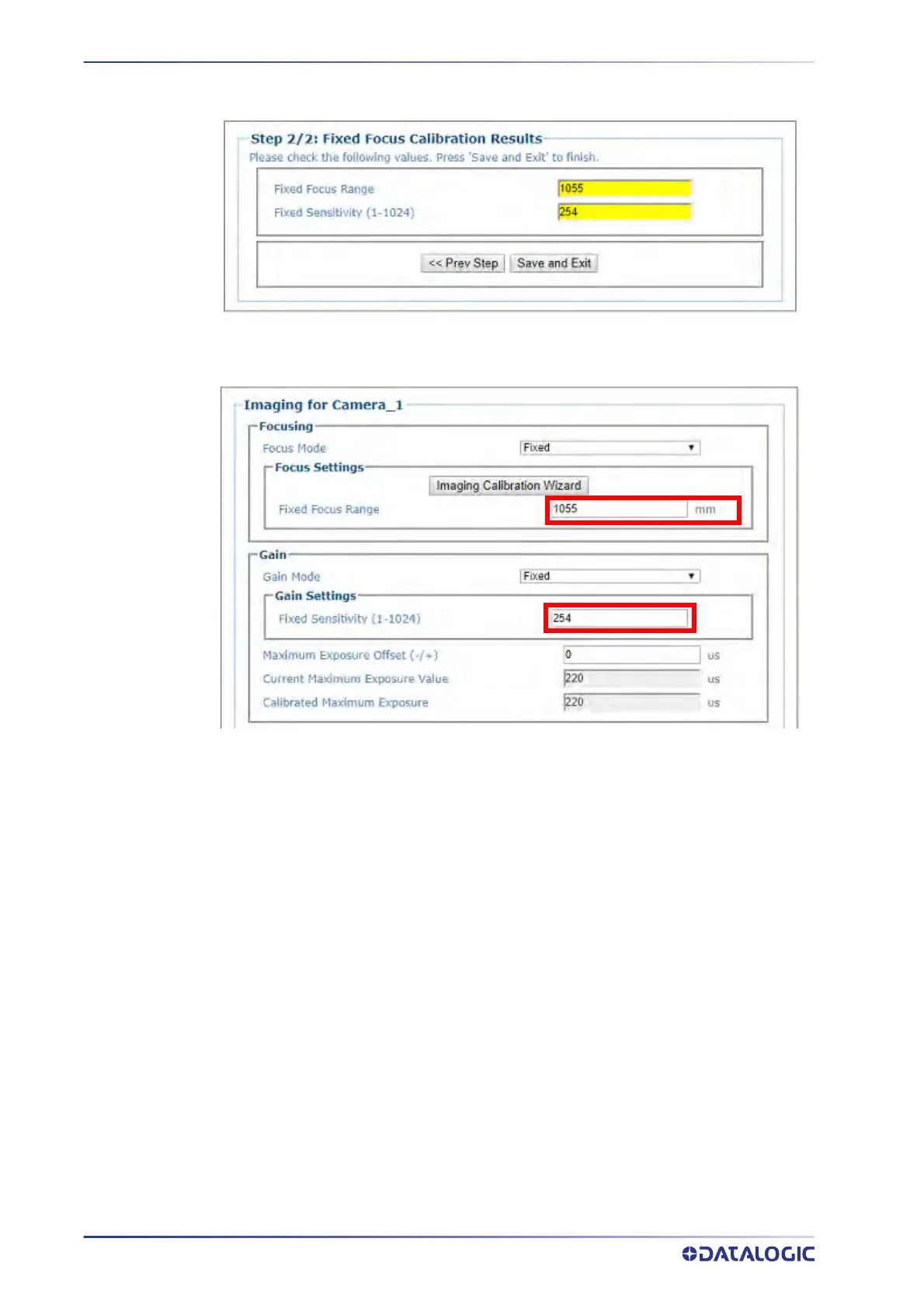 4. Click Save and Exit and the Fixed Focus Range and Sensitivity values are entered