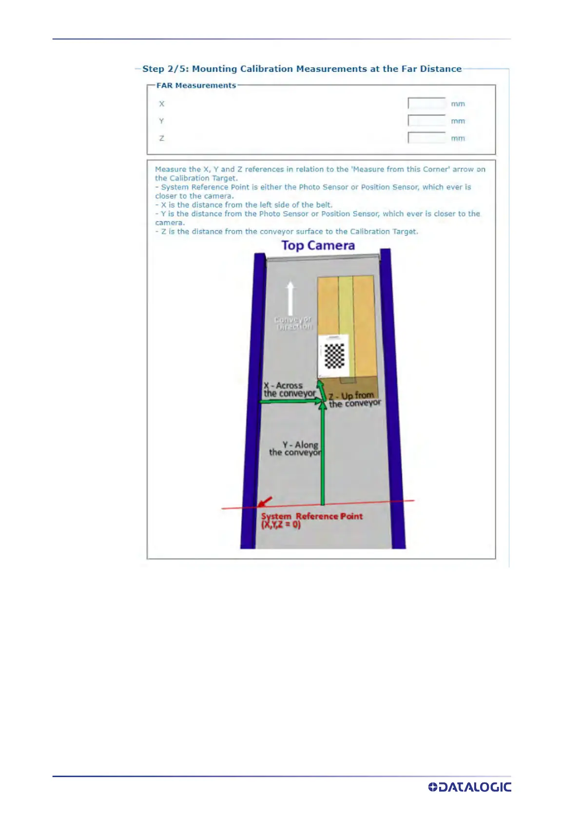 7. Measure the distance from the conveyor surface to the Calibration Target. Z=0