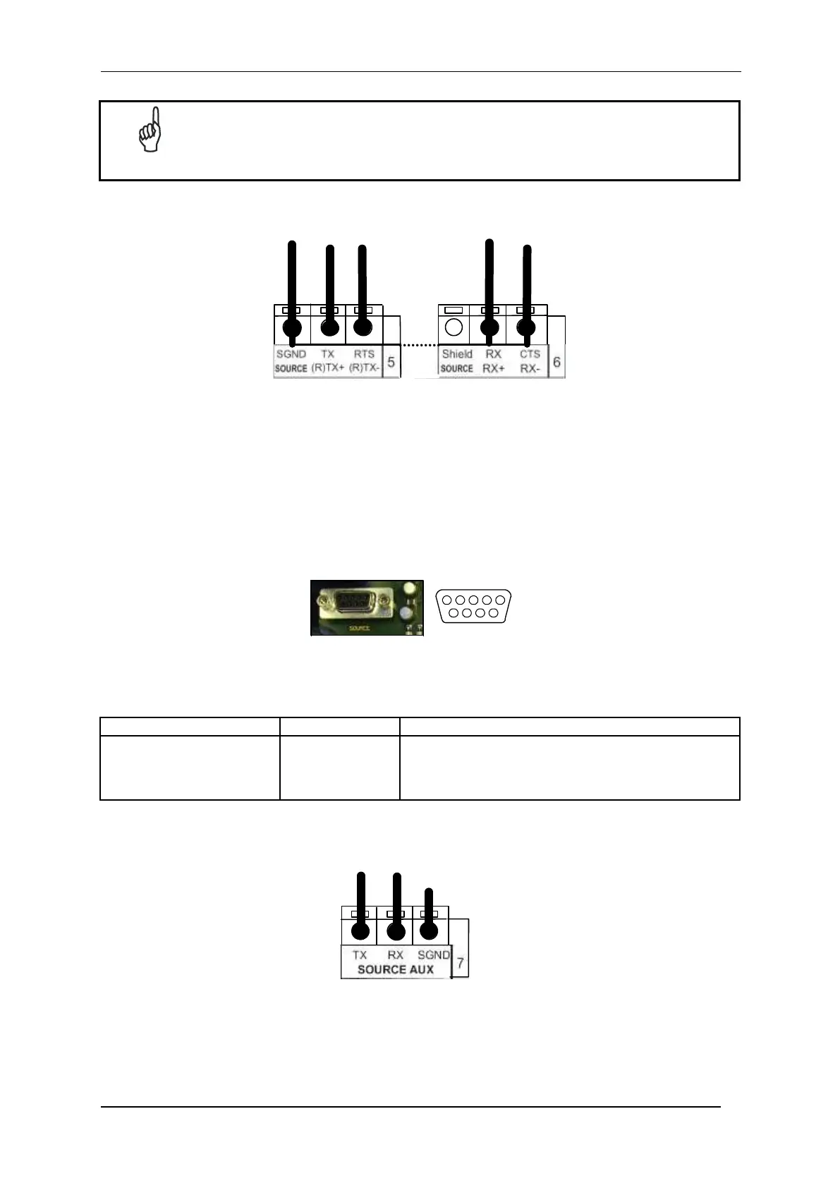 With reference to the 9-pin connector of Figure 25, the following pins are used to connect the Data Source