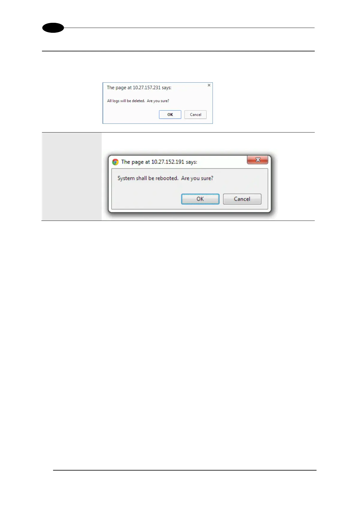 appears. Click OK to clear the logs, or click Cancel to return to the