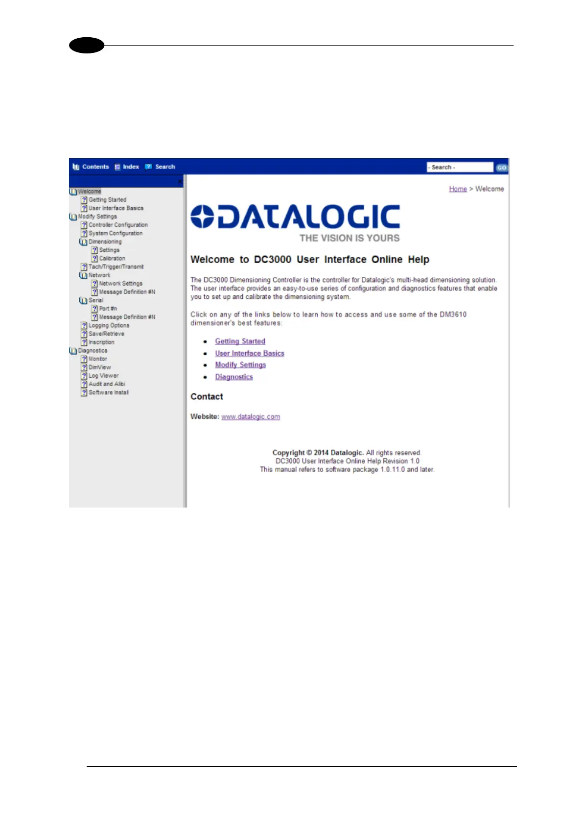 Clicking Diagnostics | Help opens the full online help system for the DM3610 User Interface.