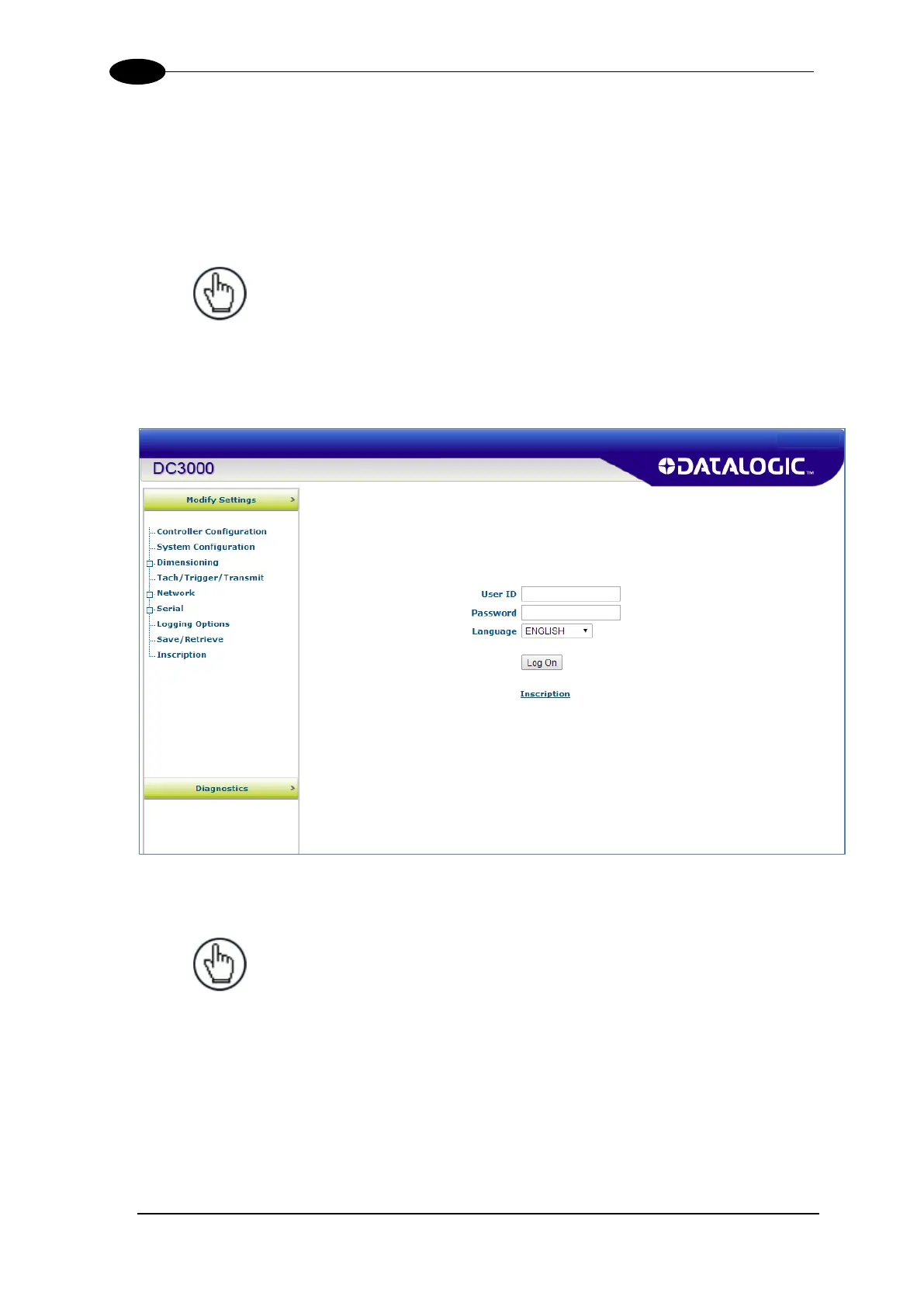 4. Log on to the DC3000 User Interface. The default User ID is DM3610, and default