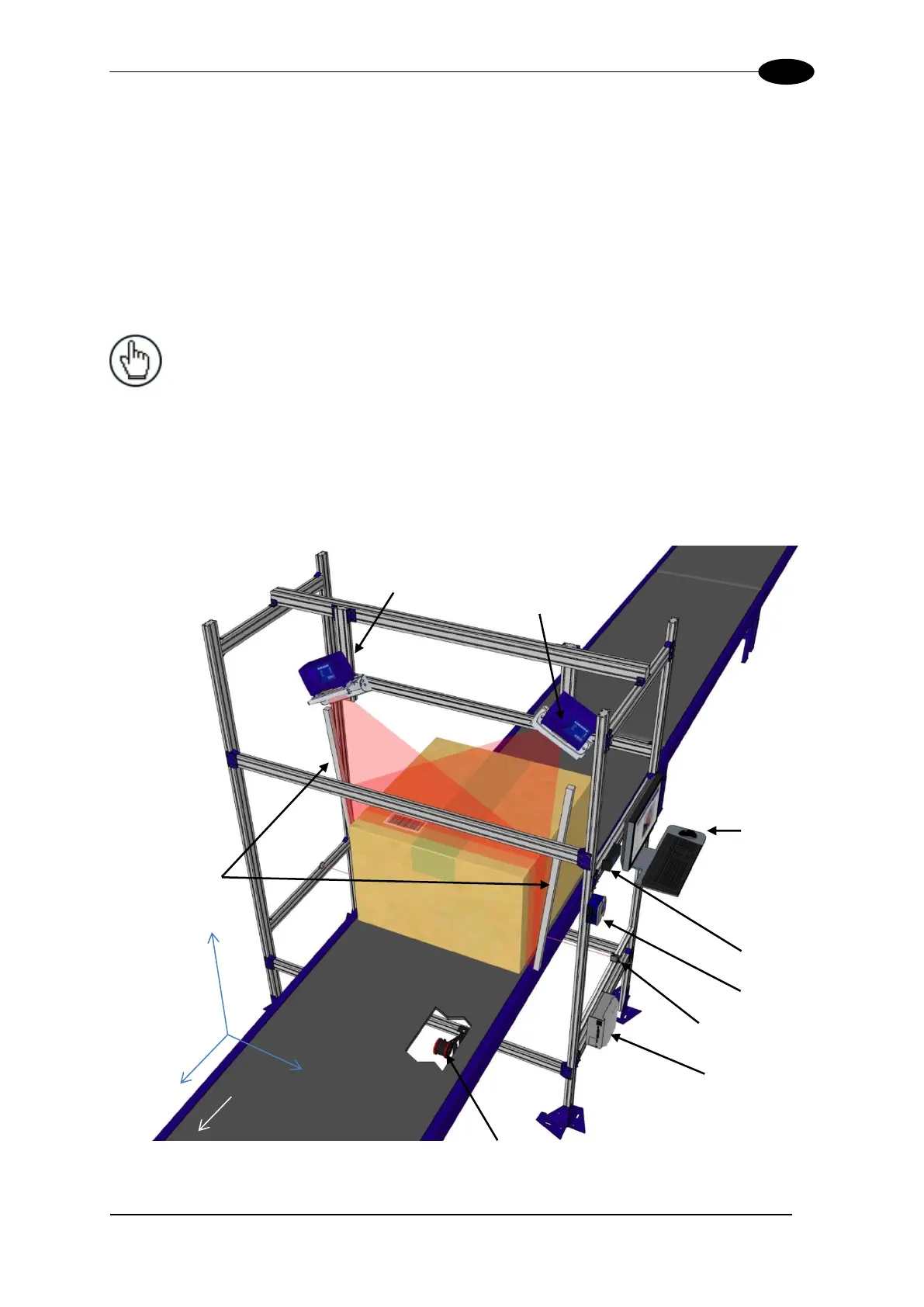 of the conveyor and angled in toward the center line of the conveyor. The dimensioners are