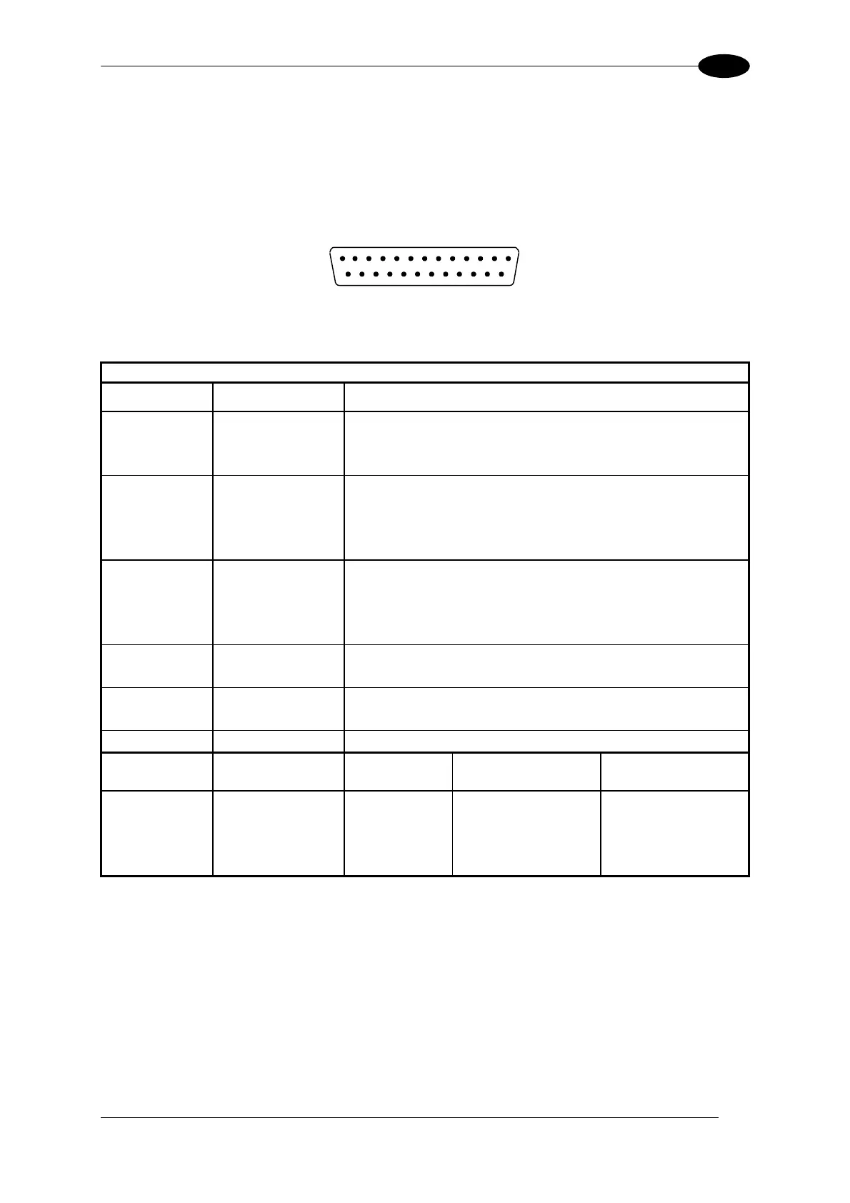 The table below gives the pinout of the 25-pin male D-sub connector for connection to the