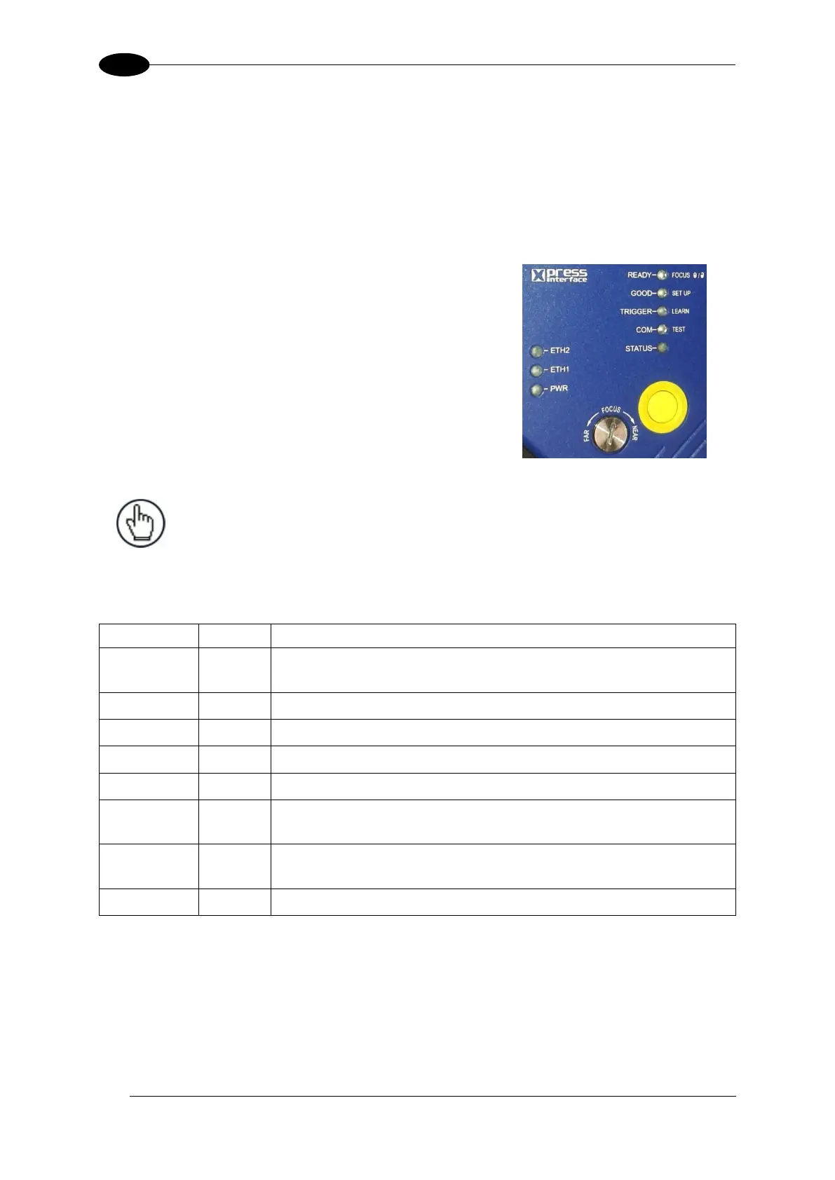 The colors and meaning of the indicator LEDs are illustrated in the following table: