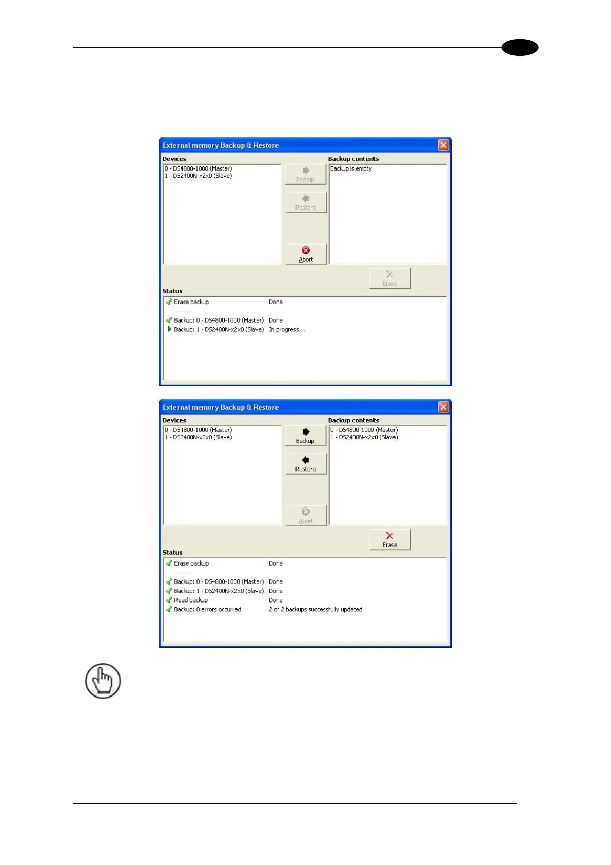 Before executing a Backup on a BM100 backup module make sure the