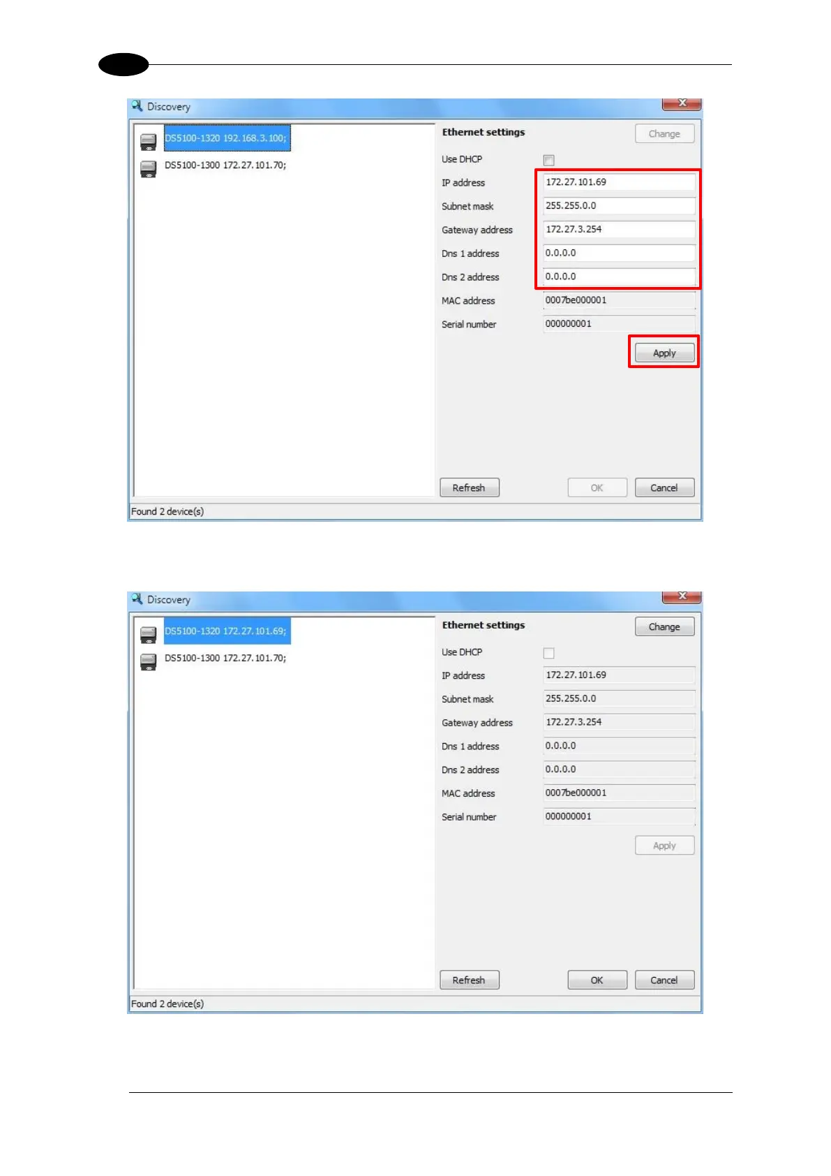 3. Click the Apply button. The device will be re-discovered. You should now see the