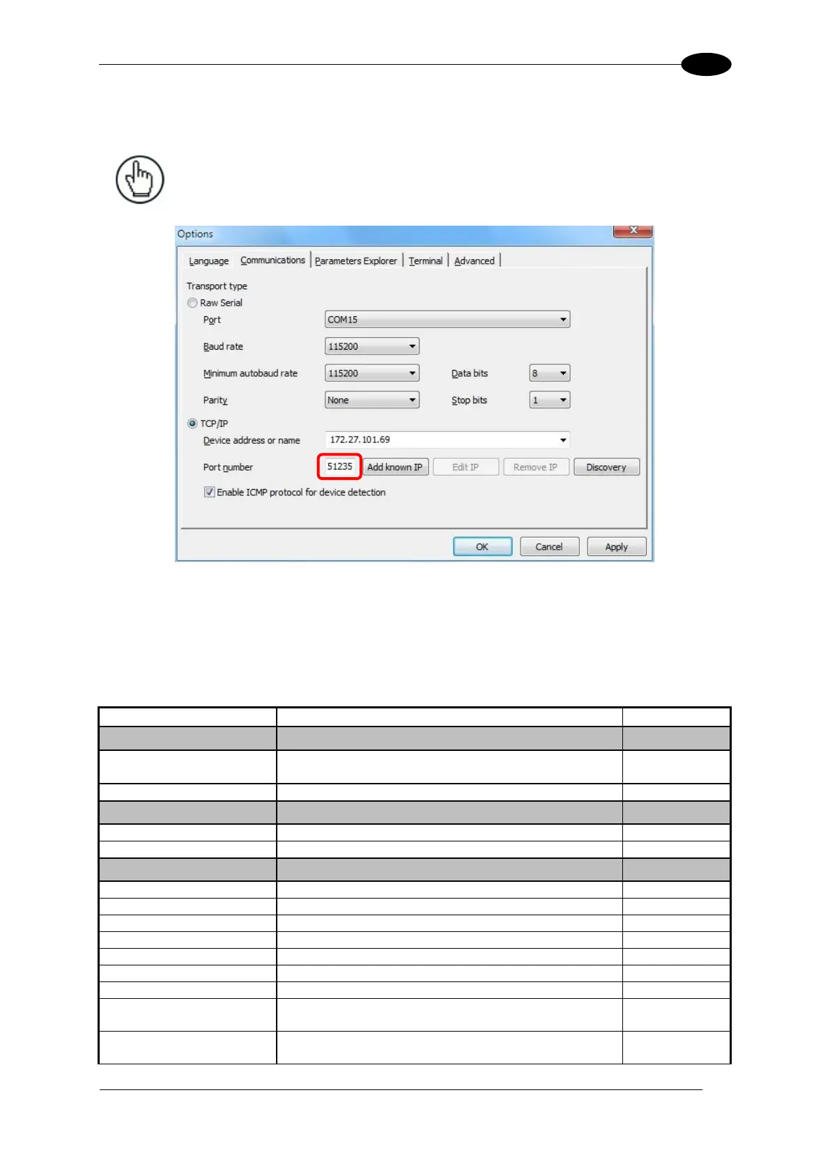 4. Click OK to return to the Communications folder. You will see the updated IP address