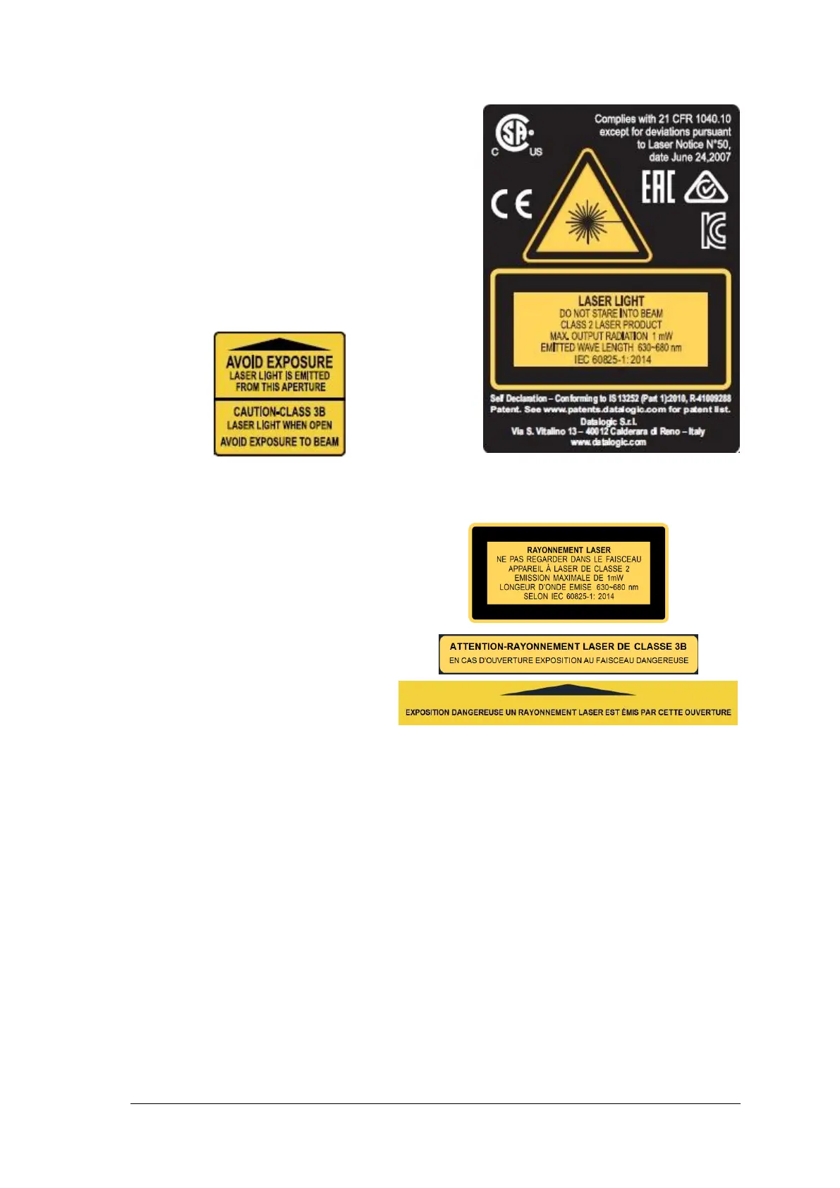 Exemple d'étiquettes d'avertissement laser