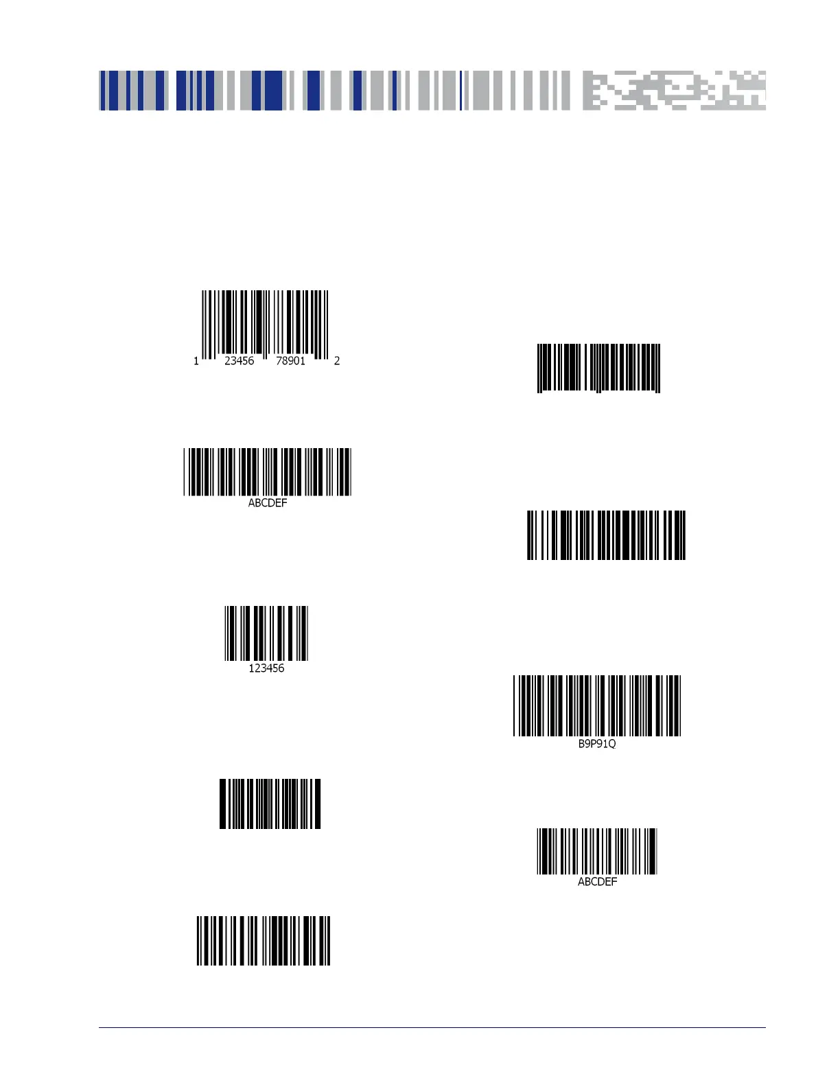 The sample bar codes in this appendix are typical representations for their symbology types.