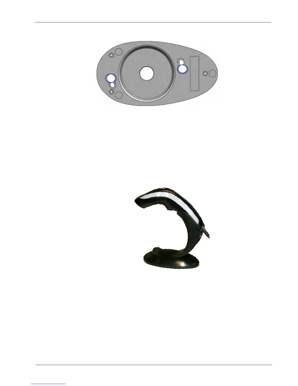 5. Set the stand in place on the screws by aligning the large holes (circled in