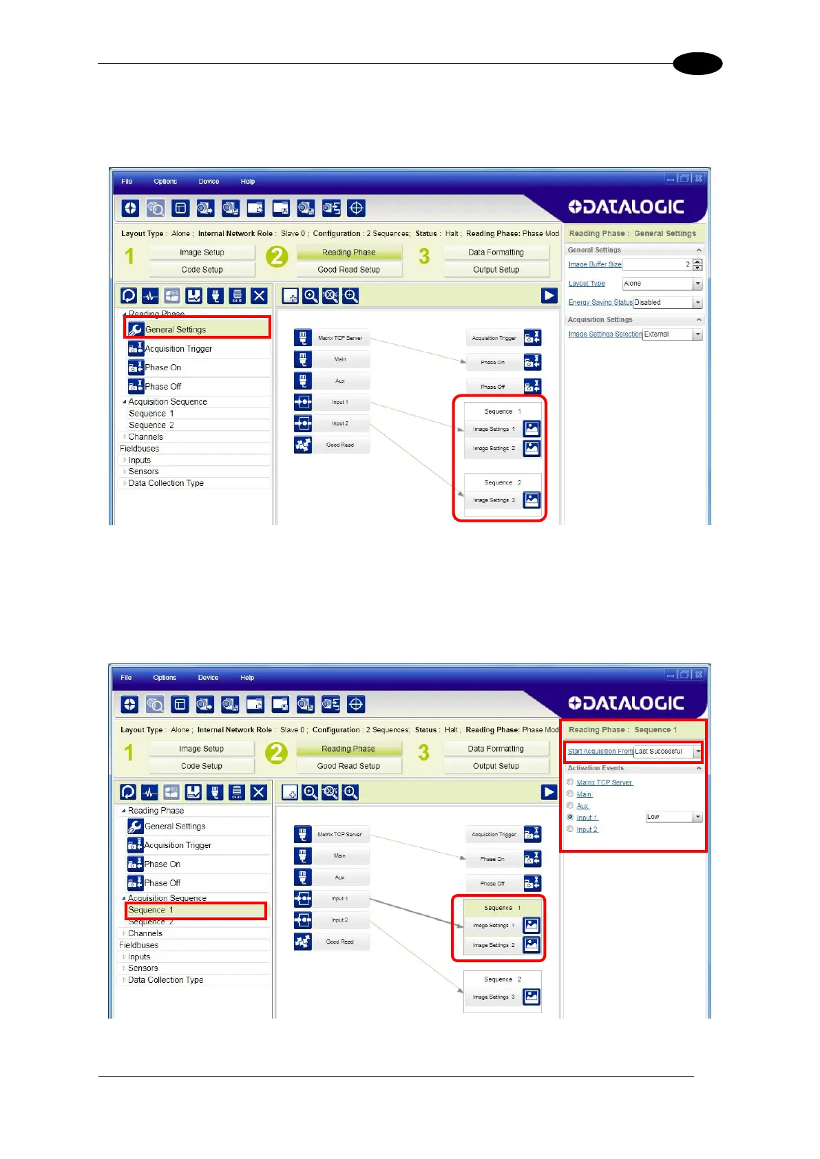 Each Acquisition Sequence can be activated exclusively by a single event, either through a