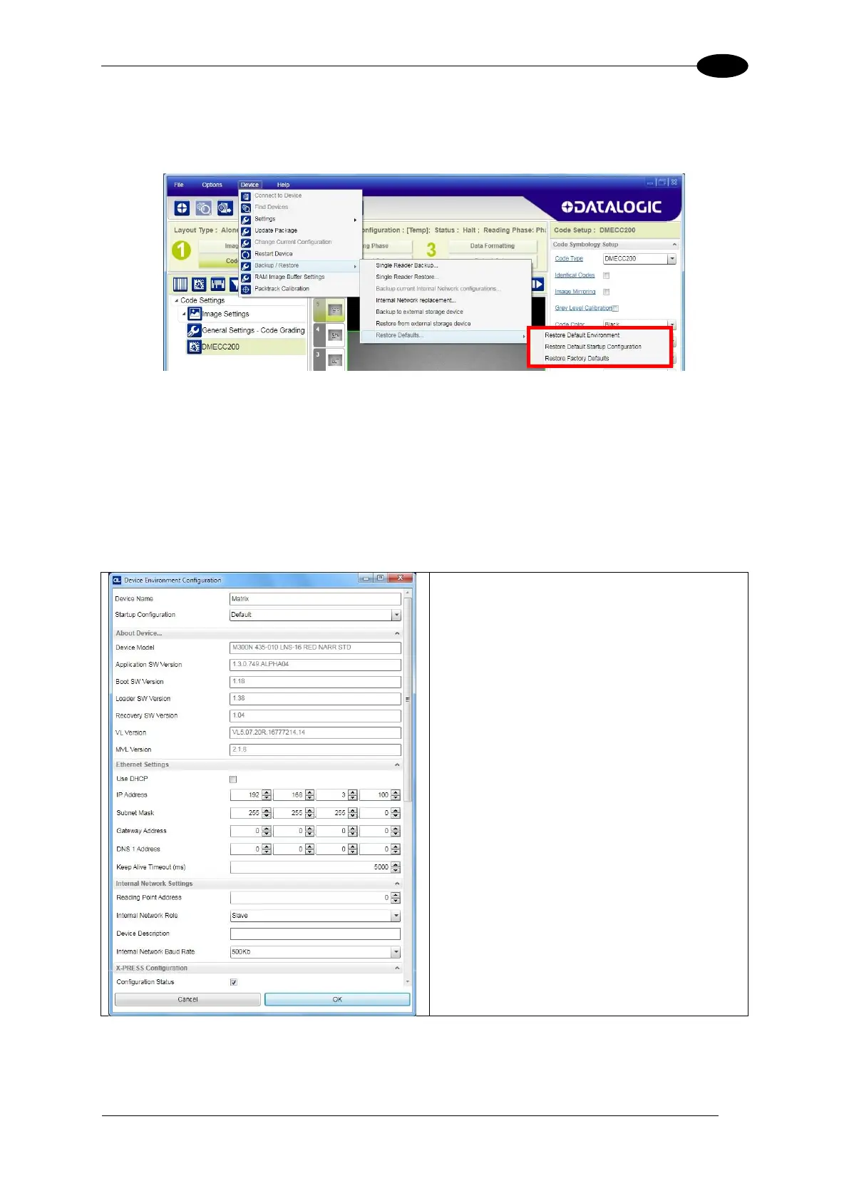 The same action can be performed from the Device menu >Backup/Restore > Restore