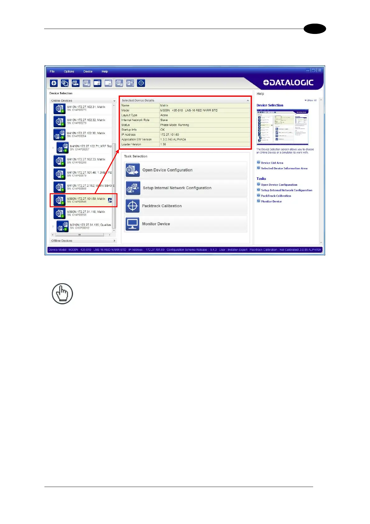 7. Double-click on or drag the device icon into the Selected Device Information Area. Details