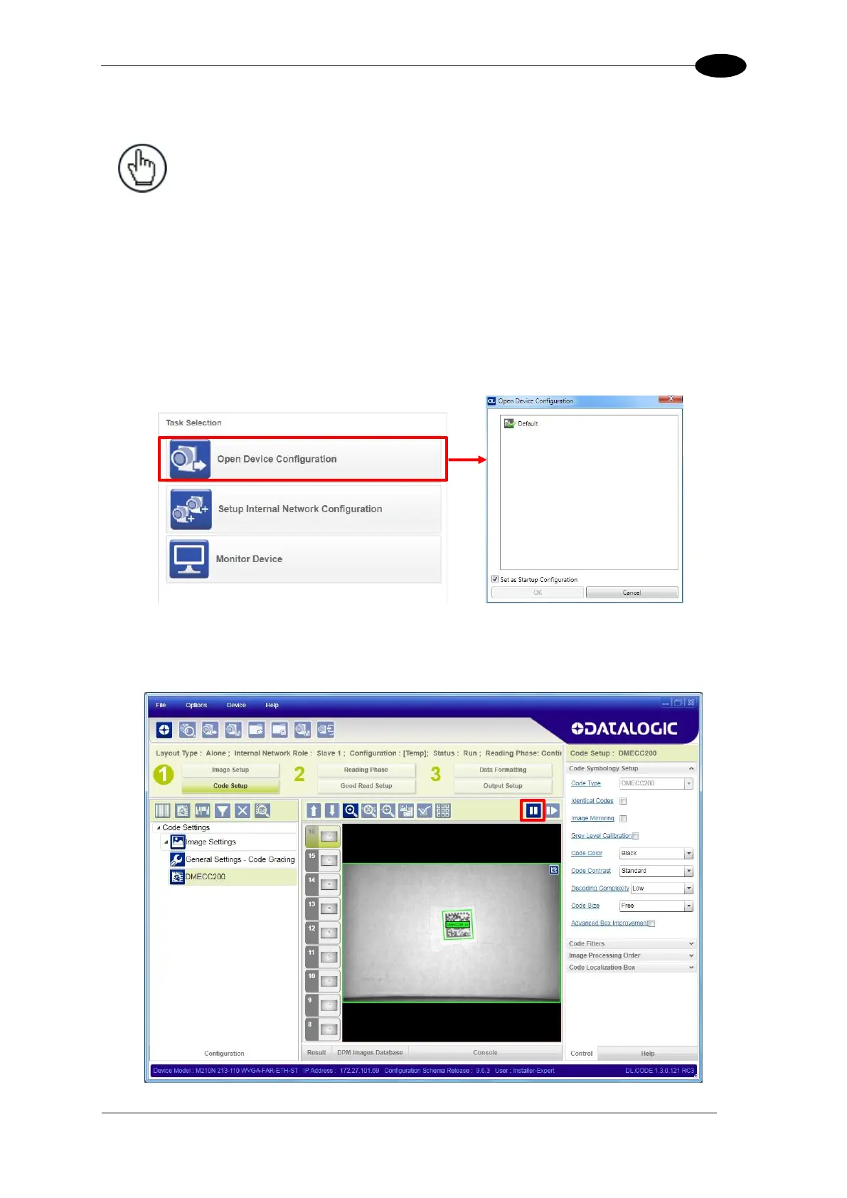 acquisition by clicking on the Pause button. If a Data Matrix code is placed in front of the