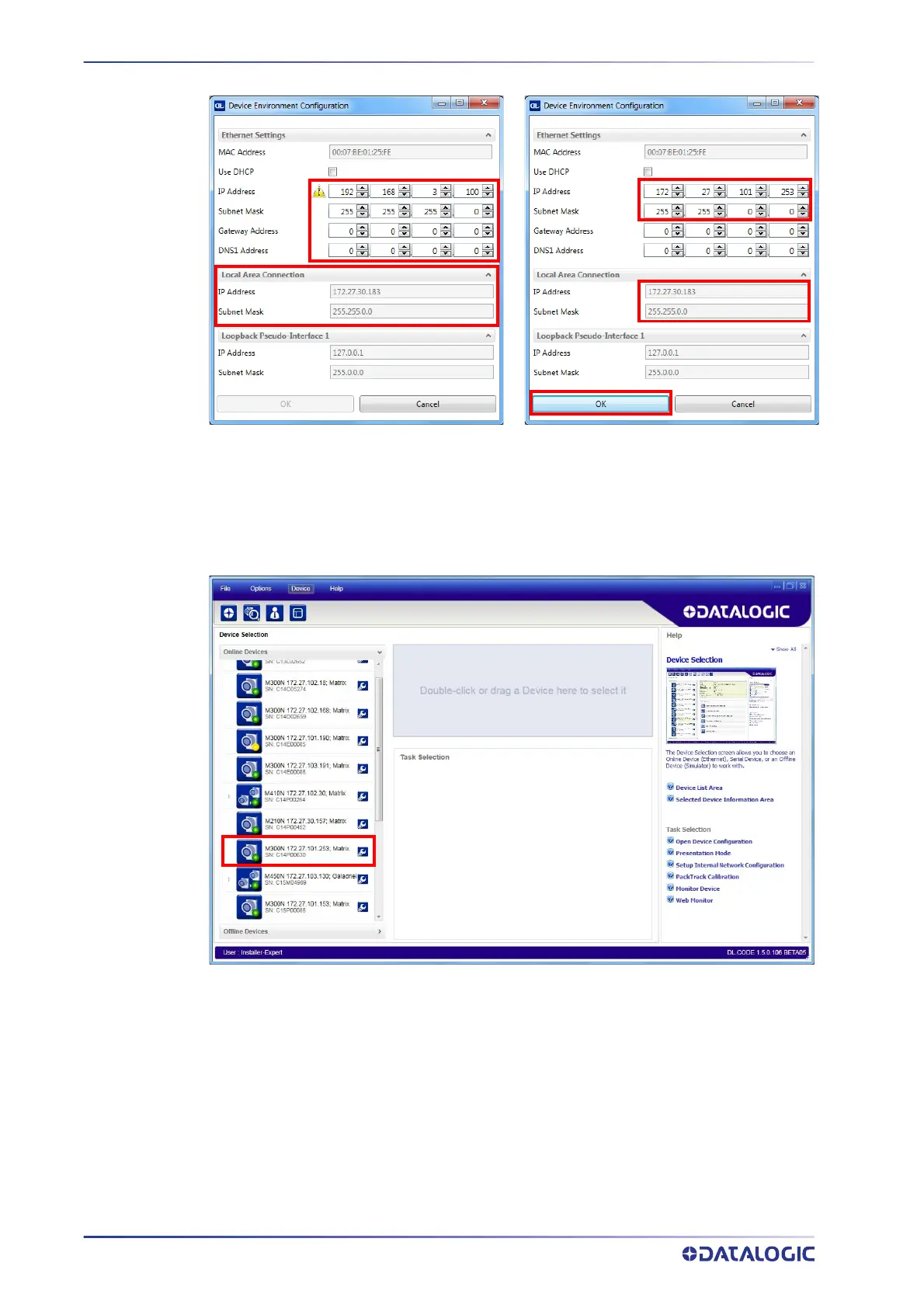 6. Click OK; the device will reappear in the list of Online Devices (in color) meaning it