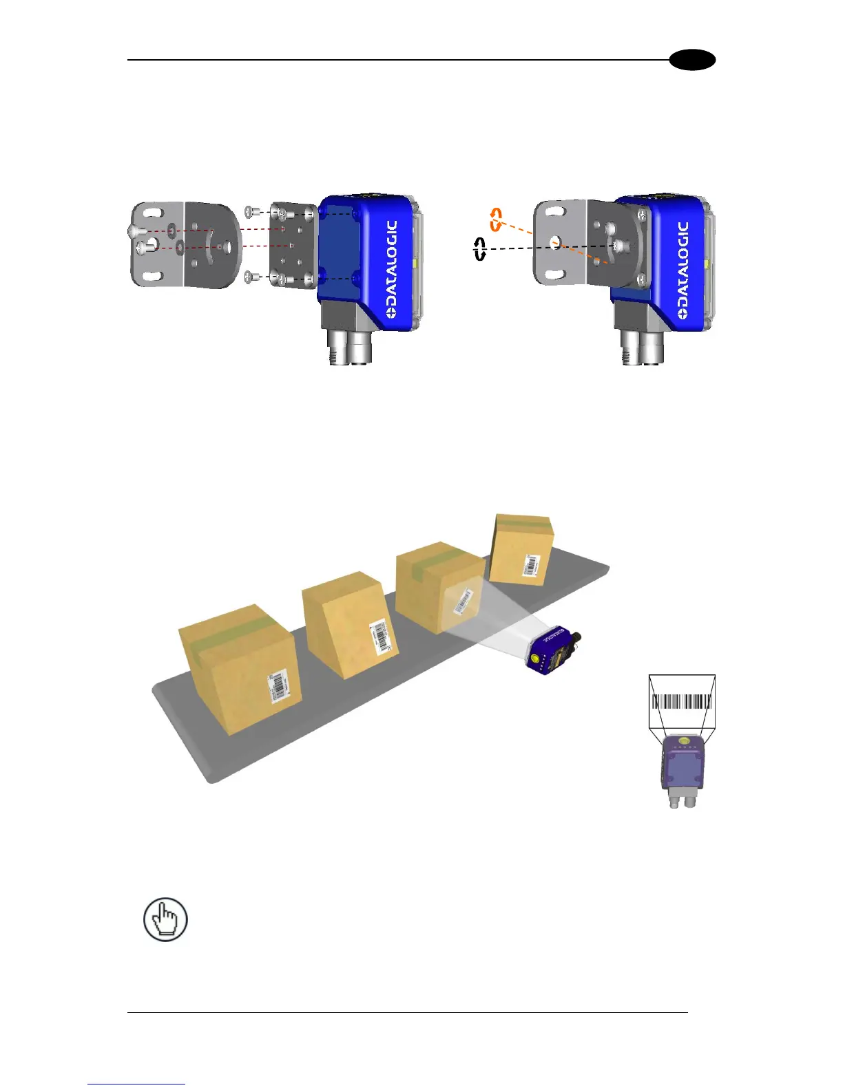 angles: Pitch or Skew 10° to 20° and Tilt 0°, although the reader can read a code at any tilt