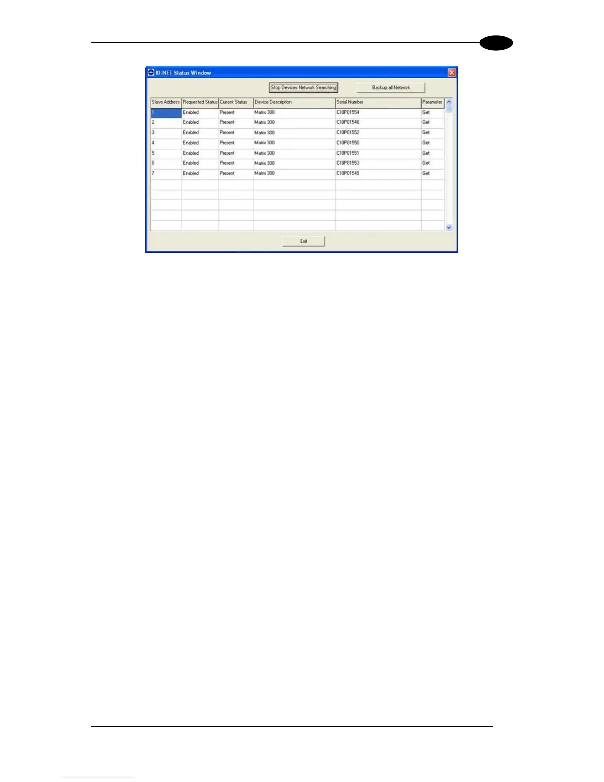 4. Click anywhere in the row of the specific slave in the ID-NET Status Window when its